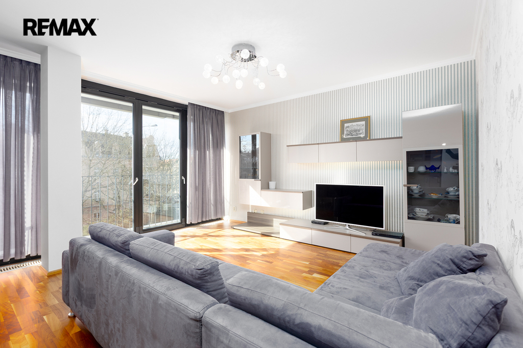 Byt se nachází v novostavbě z roku 2010 a nabízí moderní interiér s kvalitními materiály. Dominantou bytu je německá kuchyňská linka a nábytek. Podlahy pokrývá kvalitní parkety, kteří dodává interiéru útulnou atmosféru. Díky francouzským oknům je byt krásně prosvětlený a nabízí úžasný výhled. Pro ještě větší komfort jsou okna vybavena žaluziemi, které chrání byt před přehříváním a umožňují regulovat množství denního světla podle potřeby.