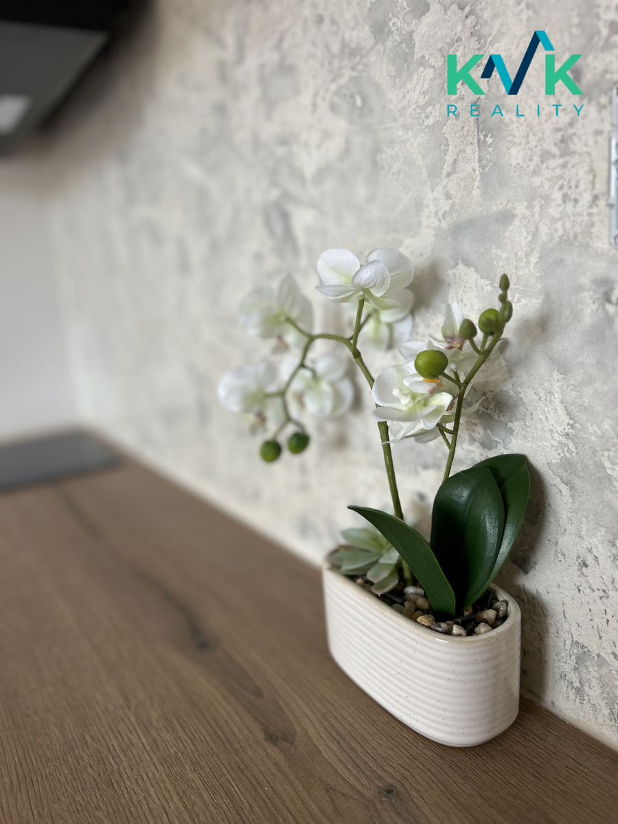 Dispozice a vybavení: koupelna se sprchovým koutem a WC, kuchyňská linka Gorenje- elektrický sporák, varná deska indukce, digestoř, pračka – vše nové, plovoucí podlaha