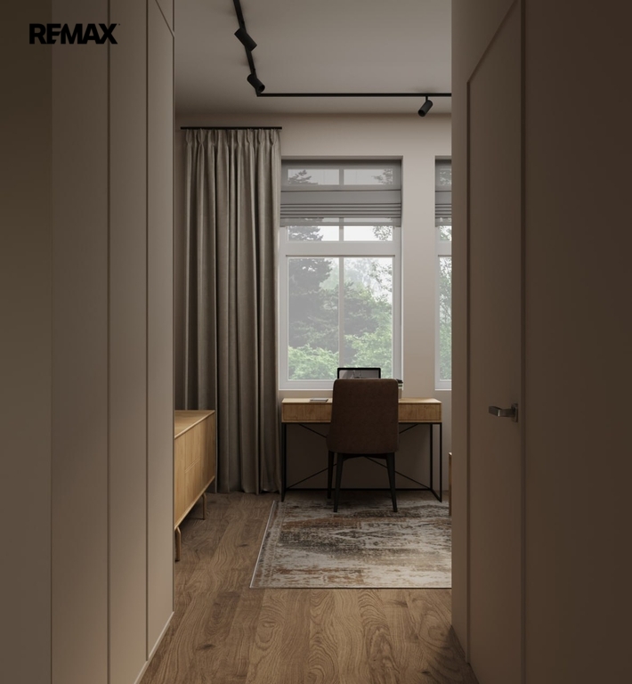 Byt se nachází ve 2. patře (3. NP) a jeho hlavní předností jsou vysoké stropy 3,05 m,