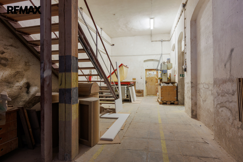 Druhou nemovitostí je rozsáhlý nepodsklepený objekt se třemi nadzemními podlažími, sedlovou střechou a půdním prostorem, který je v současnosti plně využíván k podnikatelské činnosti.