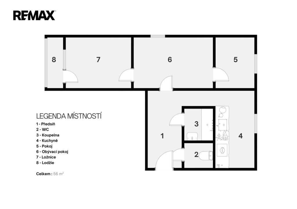 | Dispozice/podlahová plocha: | 3+1/56 m² |