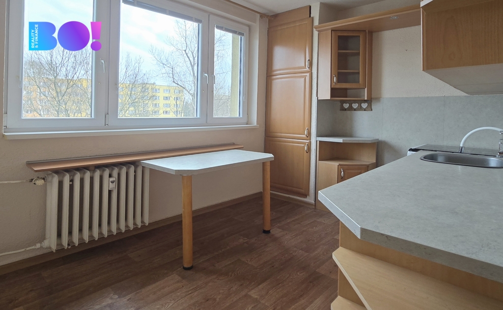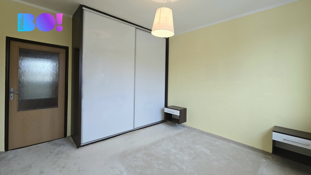 Byt je ihned k dispozici a nabízí velmi praktické dispoziční řešení. Najdete zde dva samostatné pokoje – světlý obývací pokoj a ložnici s vestavěnými skříněmi, dále kuchyni, koupelnu, samostatné WC a vstupní chodbu. Koupelna i toaleta prošly částečnými úpravami. Podlahy jsou řešeny kombinací parket a linolea, která nabízí praktické a osvědčené řešení.