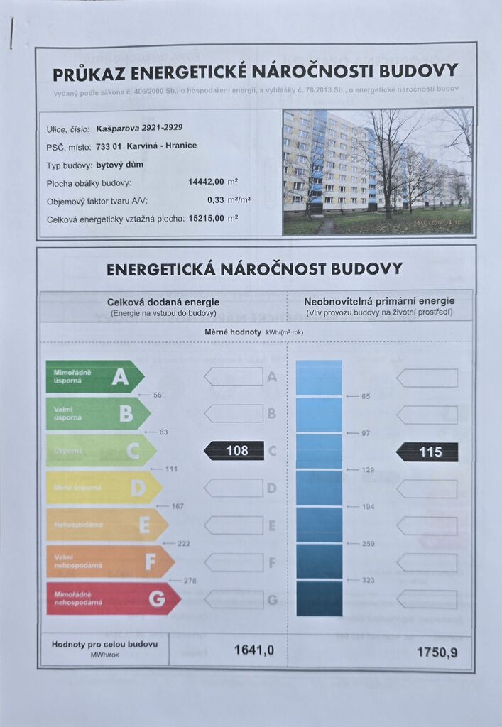 - Energetický ukazatel podle vyhlášky: č. 264/2020 Sb.