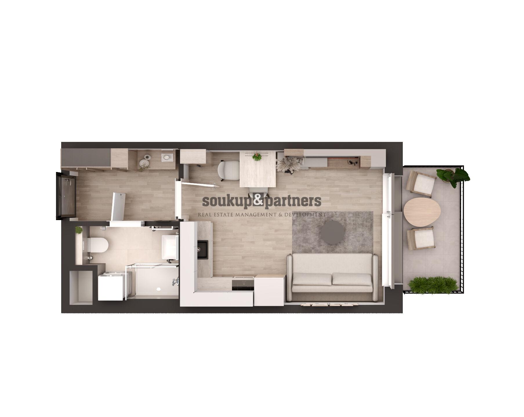 - Dispozice bytu: 1+kk