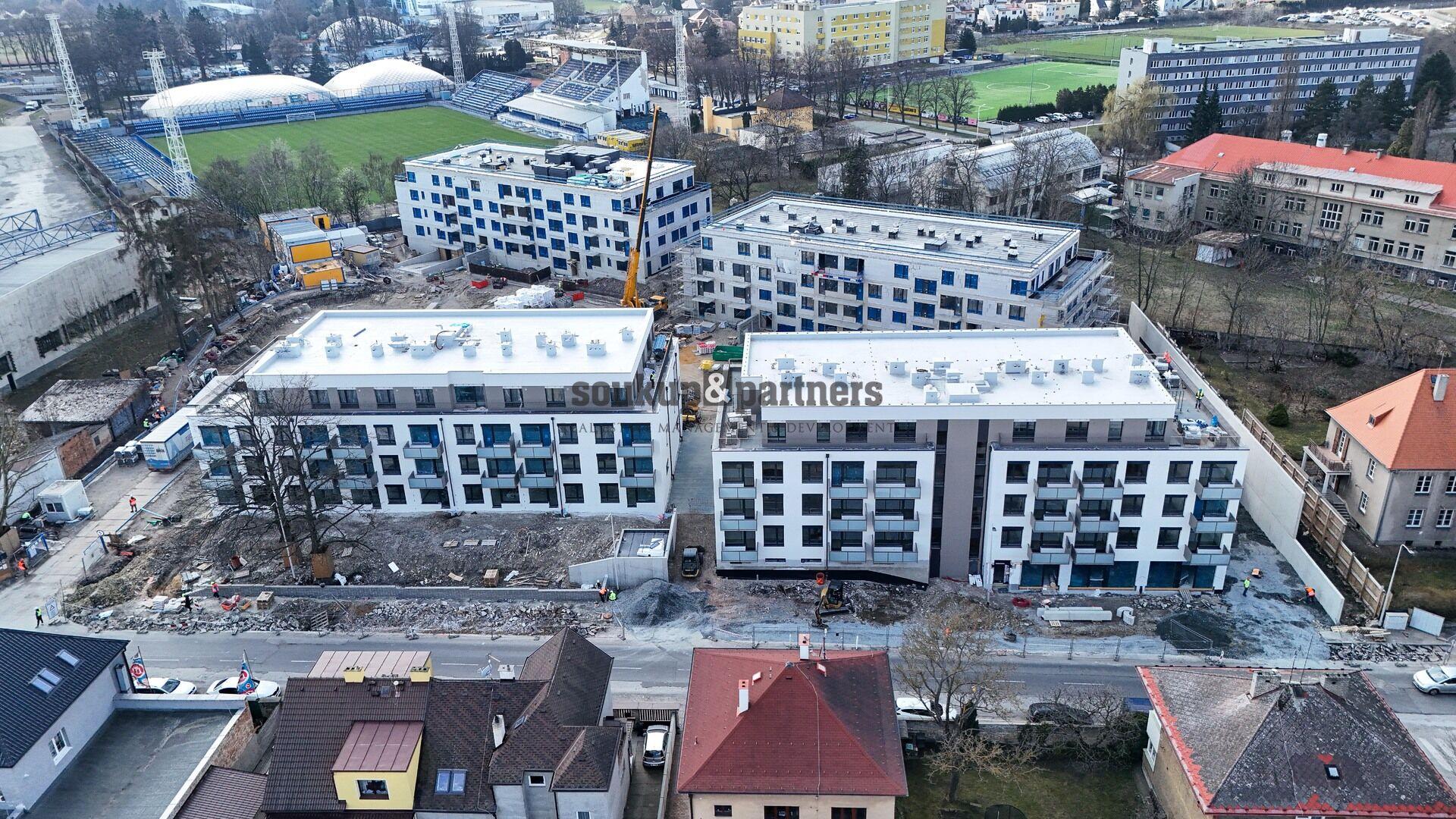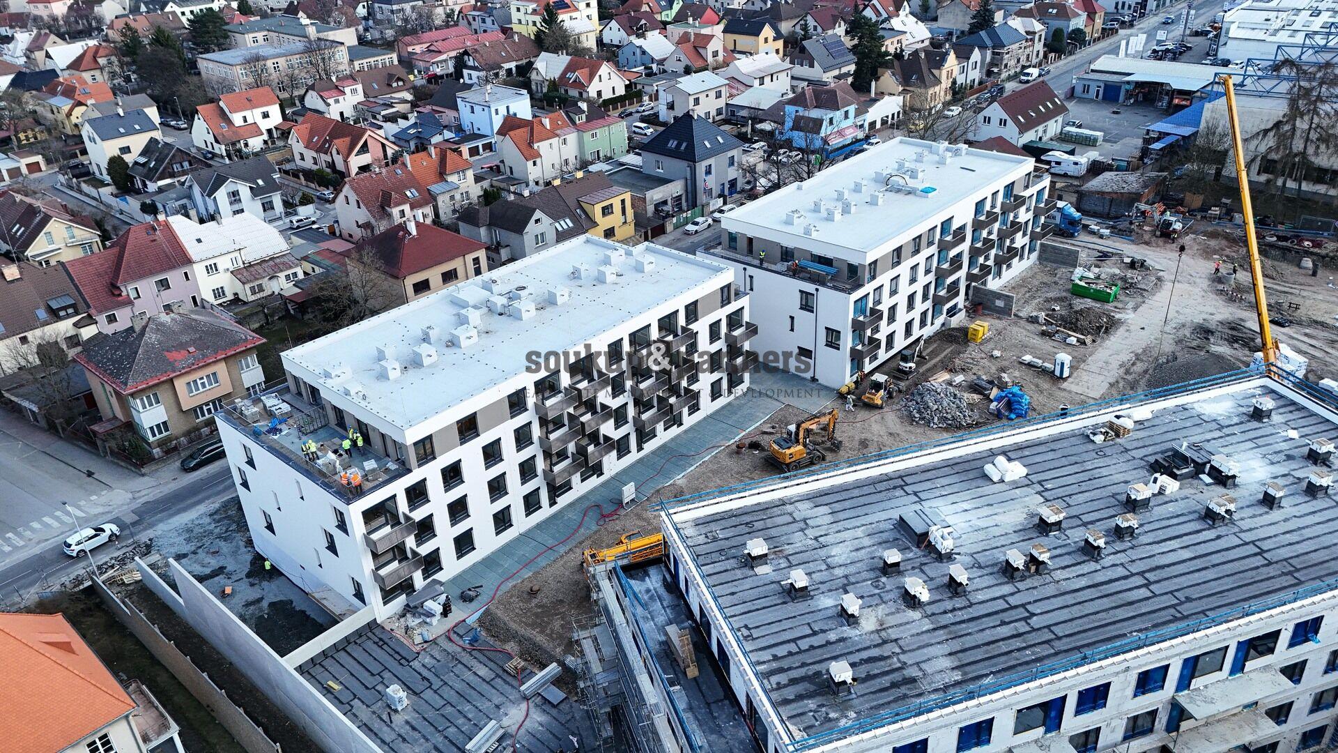 K bytu náleží venkovní parkovací stání a sklepní kóje, které jsou již zahrnuty v ceně. Předpokládané dokončení projektu je v létě 2026.