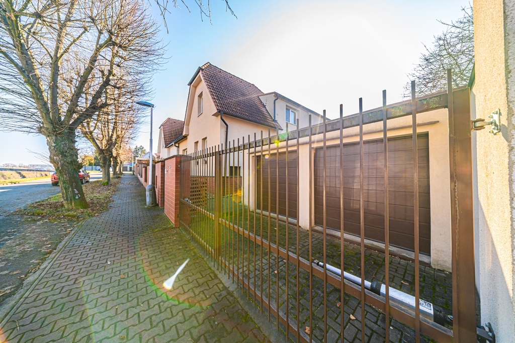 Součástí domu je udržovaná zahrada s řadou praktických doplňkových staveb. K dispozici je dvojgaráž o velikosti 26,5 m2 m² s vraty na dálkové ovládání, dále samostatná letní prádelna o ploše 6 m², sklad o velikosti 8 m², skleník, pergola o výměře 9 m² a přístřešek s krbem o velikosti 9 m², který nabízí příjemné zázemí pro posezení.