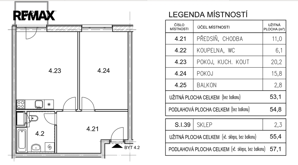 | Dispozice/podlahová plocha: | 2+kk/53 m² |