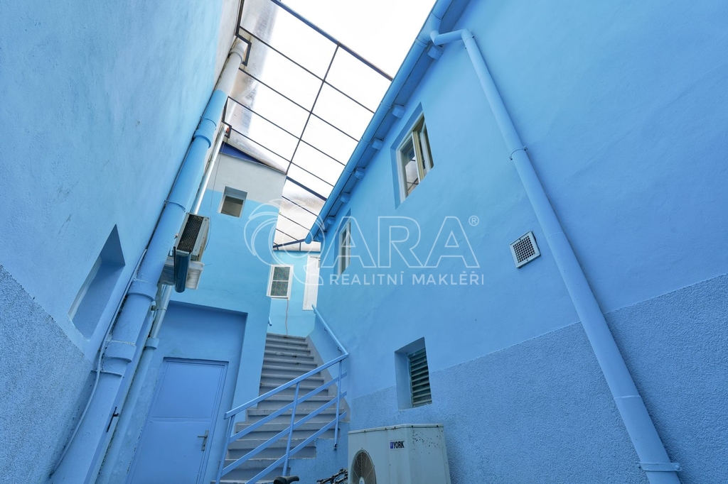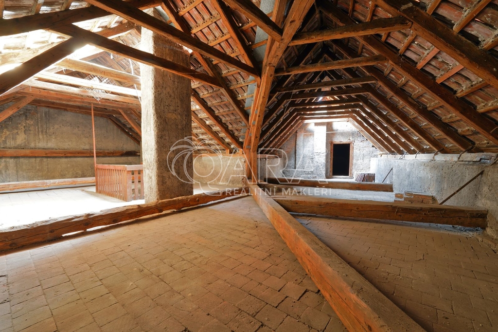 V přízemí je nebytový prostor 121 m², prostor pro kancelář nebo šatny pro zaměstnance 13 m² a skladovací prostor 1 m². V prvním patře je prostorný byt 4+kk, 69 m² s oddělenou velkou dílnou a dalším úložným prostorem 24 m². Vedle toho je na patře druhý byt 3+kk, 45 m²po kompletní rekonstrukci. V podkroví je prázdná a prostorná půda 134 m² s velkým potenciálem na vestavbu dalších bytů. Suterén domu s 18 m² je zatím prázdný a jedná se o klasický sklepní prostor s nízkými stropy. Celkem se jedná přes 425 m² v dobře udržovaném domě s novou střechou z roku 2023.