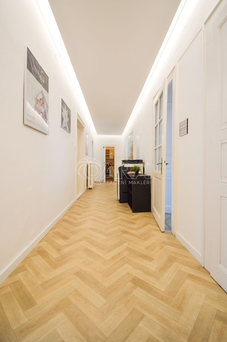 Ekonomicky stabilní nemovitost ve skvělém stavu nabízí čtyři podlaží. V přízemí je prodejna oděvů s plochou 341 m2 a se zázemím 83 m2 nad ní. V prvním patře je kancelář 157 m2 s centrální chodbou, ze které jsou vstupy do čtyř samostatných místností, do kuchyňky a na samostatnou toaletu. V té největší kanceláři je krb. Druhé patro 194 m2 je podobně řešené, jako první s možností přizpůsobit celé patro i k bydlení. Ve třetím patře je zrekonstruovaný prostorný byt 4+1 s výměrou 120 m2. Další prostor vedle bytu je půdní s úložným prostorem a schodištěm do podkroví o ploše 74 m2. Dům je také podsklepený 50 m2. Tento prostor je aktuálně prázdný a lze využít třeba jako skladovací. Celkem se jedná přes 1.000 m² ve skvěle udržovaném domě s novou střechou z roku 2022.