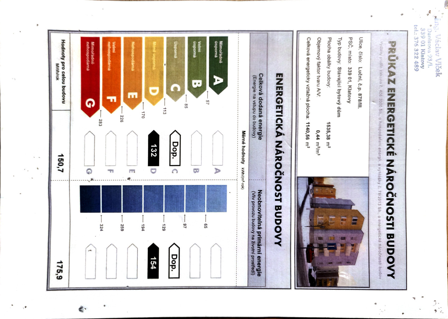 - Energetická náročnost budovy: D - Nevyhovující