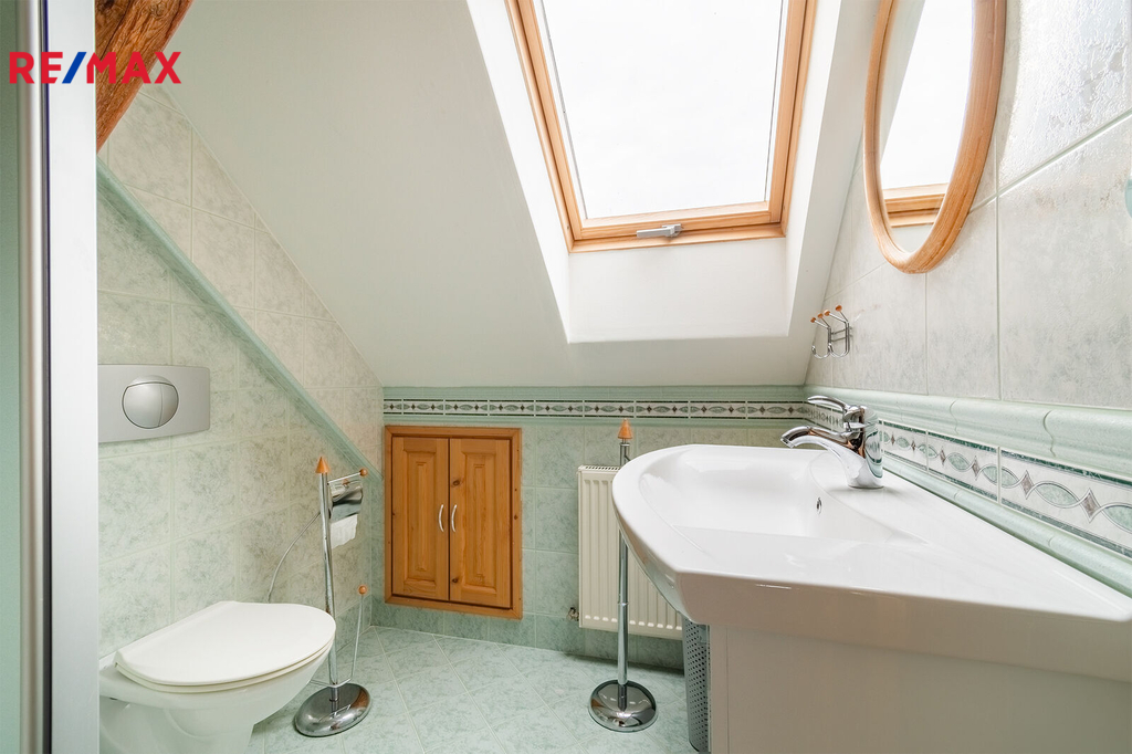 V 2.NP se nachází 4 prostorné pokoje, koupelna s wc a sprchovým koutem, pracovnou a velkou koupelnou s rohovou vanou, přípojkou na pračku, dvojumyvadlem, bidetem a toaletou. V otevřeném prostoru lze vybudovat kuchyňský kout, pro který jsou instalace připraveny.