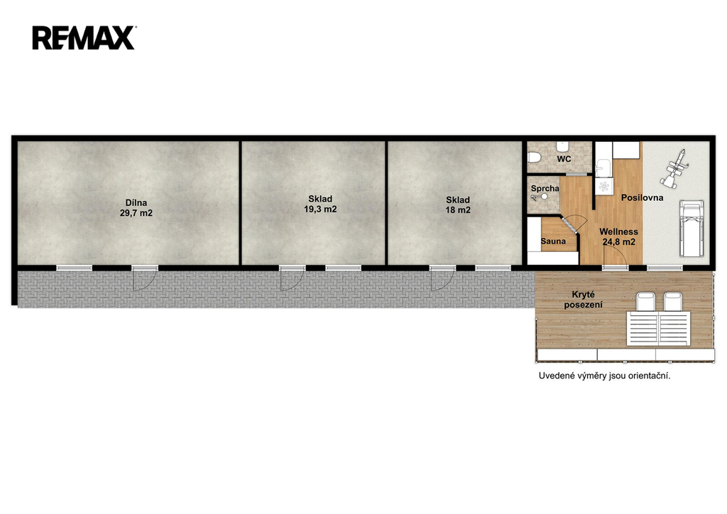 Velkým benefitem je samostatná garáž pro až 4 automobily (106 m²), dále wellness zóna se saunou a posilovnou a tři místnosti vhodné například pro krátkodobý pronájem nebo podnikání. Tato část má vlastní vytápění elektro kotlem.