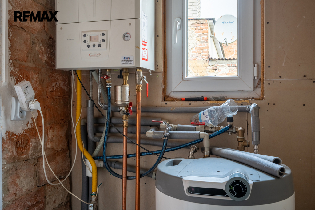 Dům je vytápěn plynovým kotlem, ohřev vody zajišťuje elektrický kotel. K dispozici je také možnost napojení kotle na tuhá paliva.