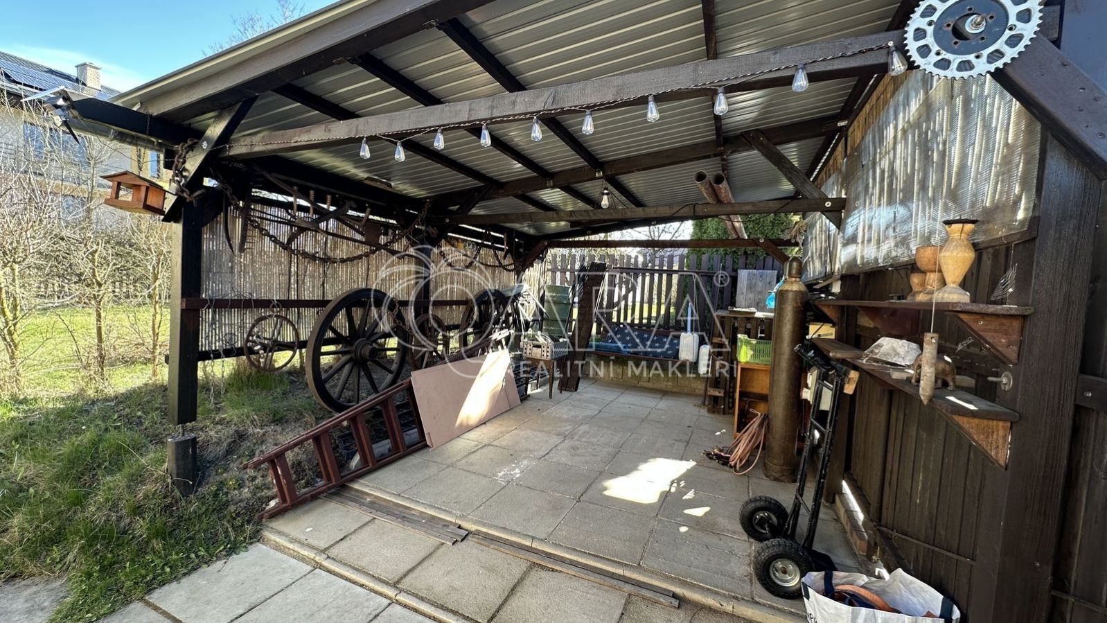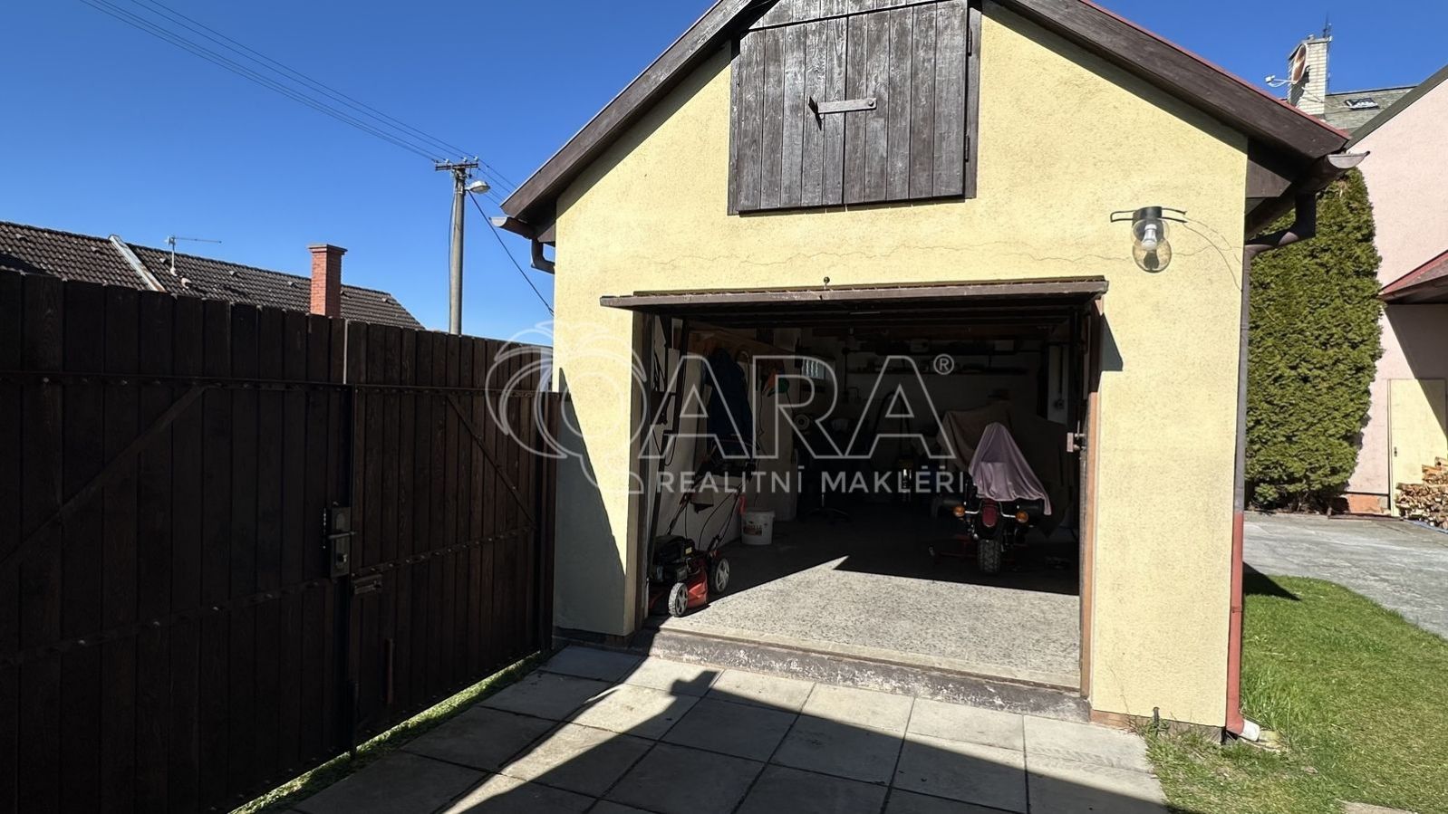 Velkou předností této nabídky je i venkovní zázemí. K domu náleží garáž s dílnou, která přijde vhod nejen motoristům a kutilům, ale i každému, kdo ocení další prostor navíc. Příjemné chvíle venku si můžete užívat pod pergolou a nechybí ani zahrádka, ideální pro pěstování květin, bylinek nebo vlastní zeleniny.