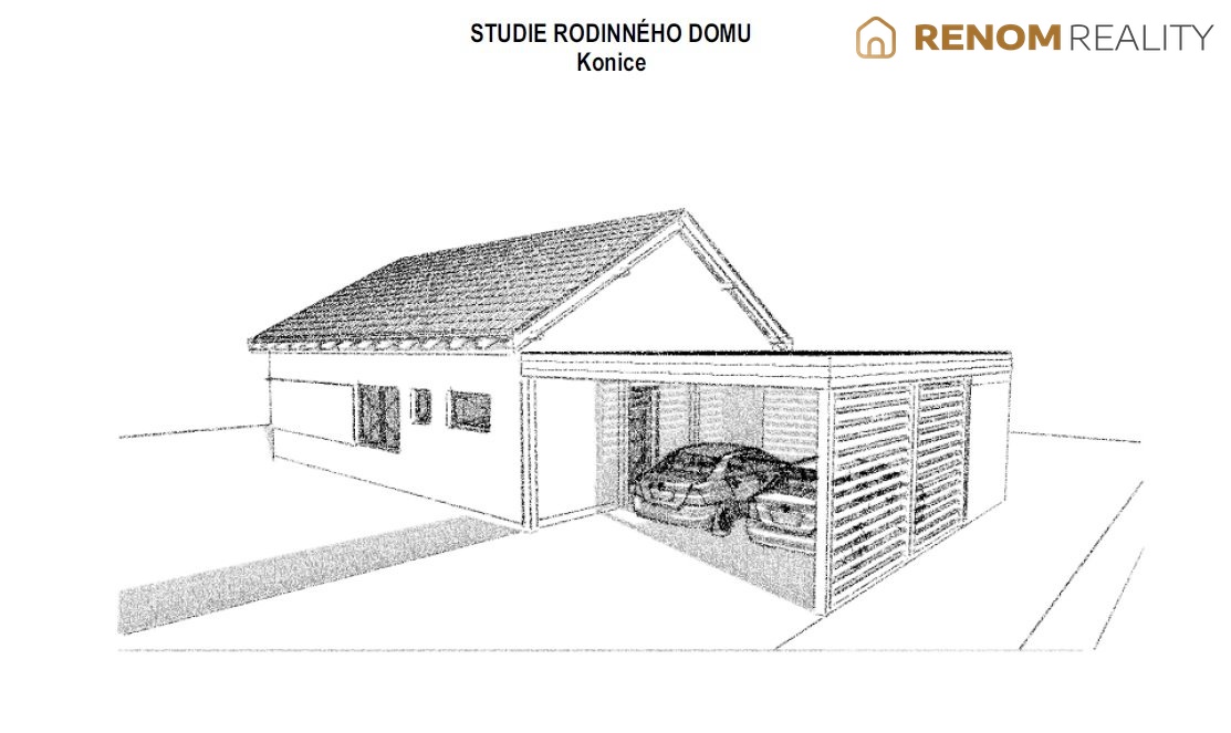 Dispozice domu: vstupní chodba, technická místnost, samostatné WC s umyvadlem, obývací pokoj s kuchyňským koutem, 3x neprůchozí pokoj, koupelna s vanou a sprchovým koutem, druhé WC. Obývací pokoj s případnou terasou je orientovaný na JIH a nabízí výhled do lesů.