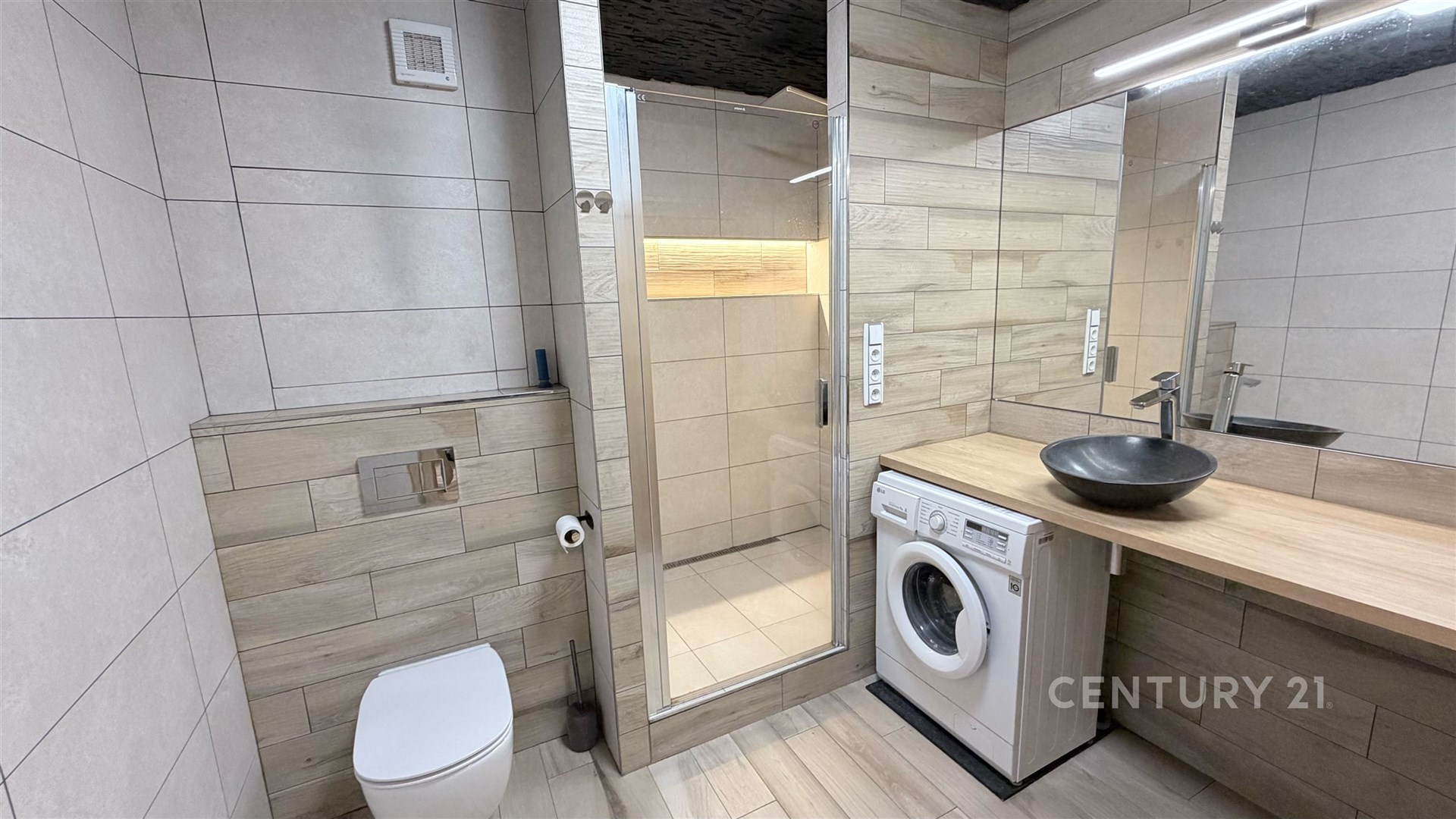 Byt je laděn do teplých přírodních tónů, s kvalitními podlahami, interiérovými dveřmi a moderními detaily, které vytvářejí harmonický a stylový domov.