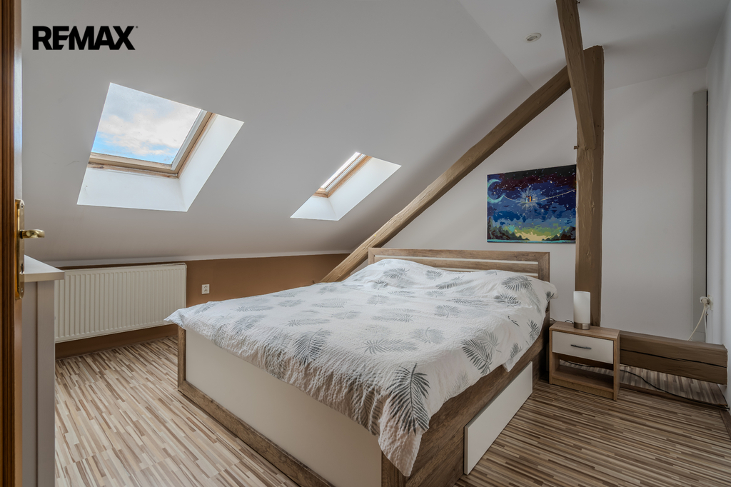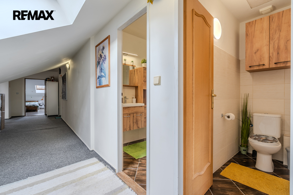 Proběhla rekonstrukce bytu ve 2.NP, původní byt 3+1 s příslušenstvím je nyní 2+1, 2x hala, WC, koupelna, šatna a balkon s nádherným výhledem do zahrady (128,03 + balkon 9,61m2).