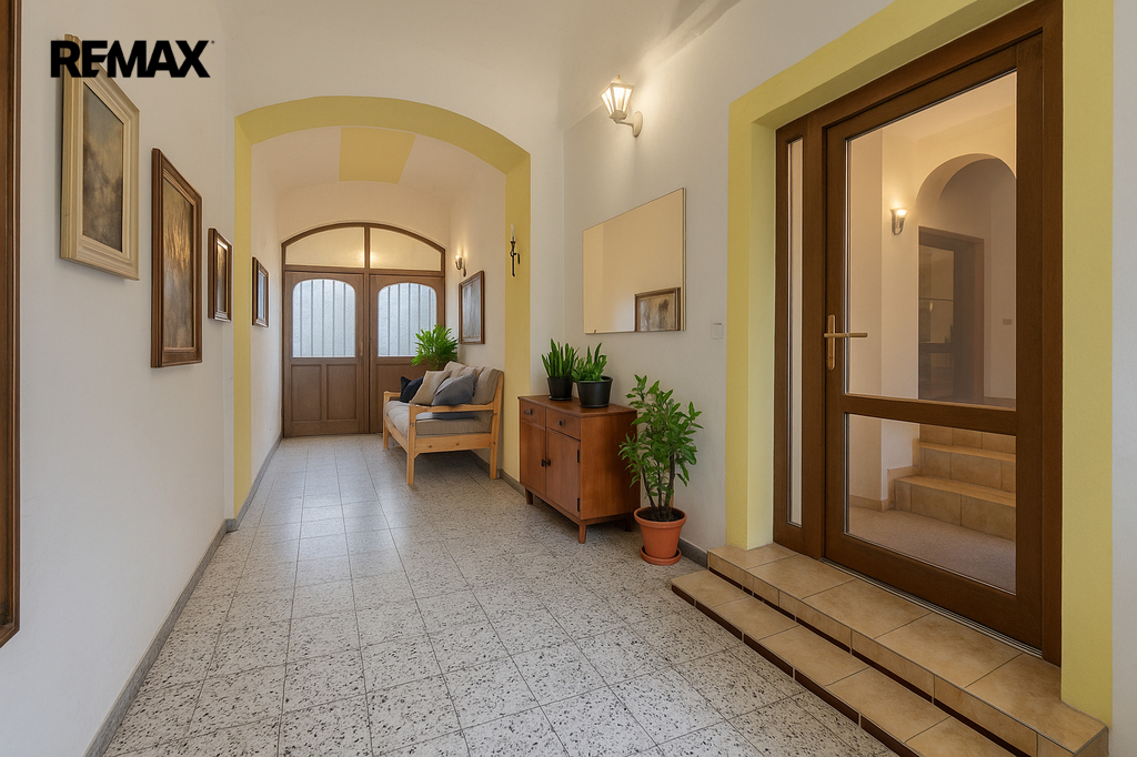 Některé fotografie jsou prezentovány s využitím AI home staiging, a to bez nábytku a osobních věcí, část prostor v 1.NP, průjezd domu, dílna.