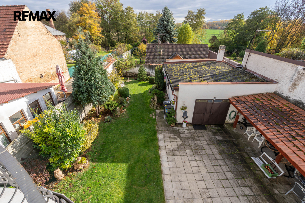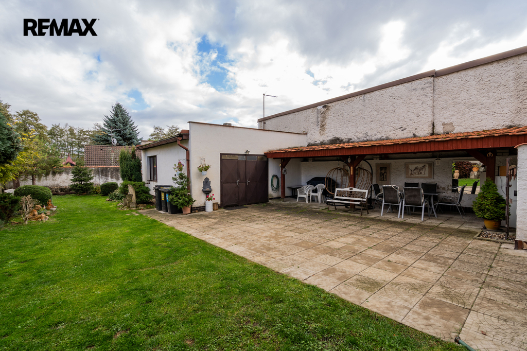 Celková užitná plocha domu je 489 m2 včetně sklepů (84m2). K domu náleží udržovaná zahrádka, dílna a prostor pro relaxaci s pergolou.
