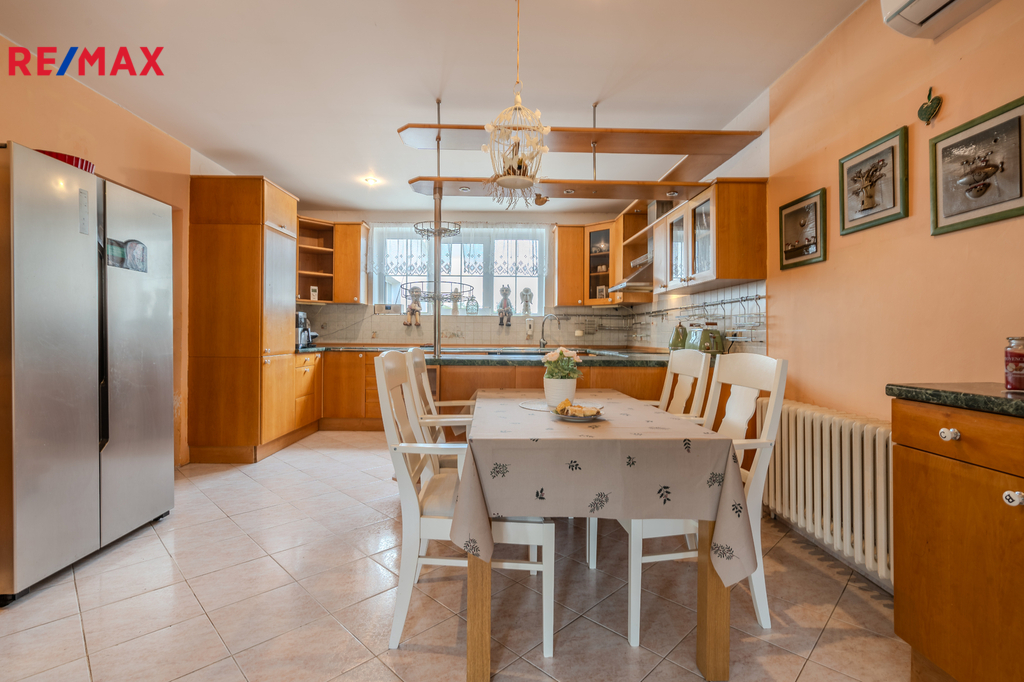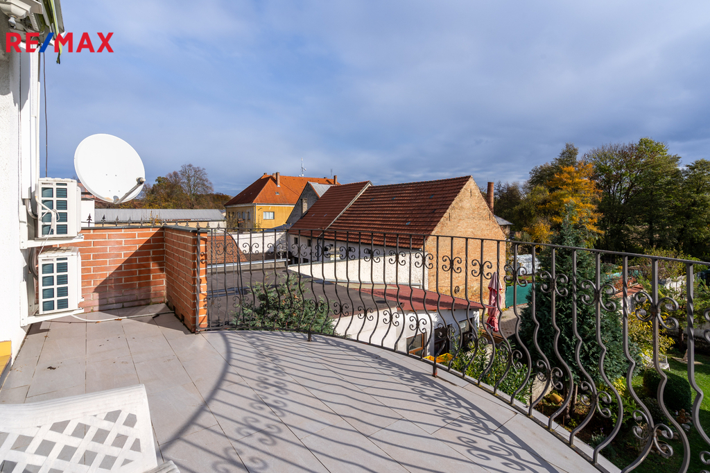 Celková užitná plocha domu je 489 m2 včetně sklepů (84m2). K domu náleží udržovaná zahrádka, dílna a prostor pro relaxaci s pergolou.