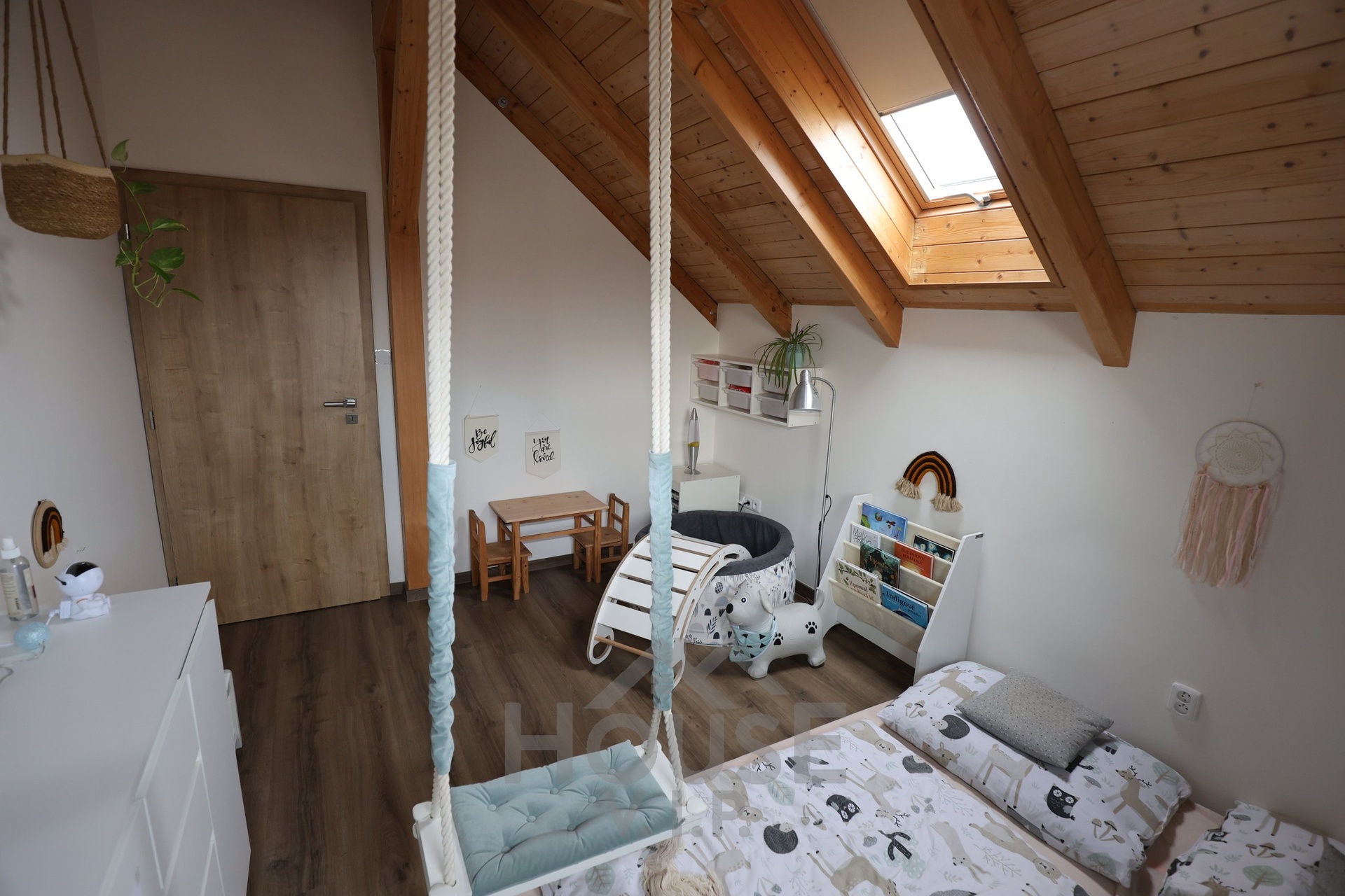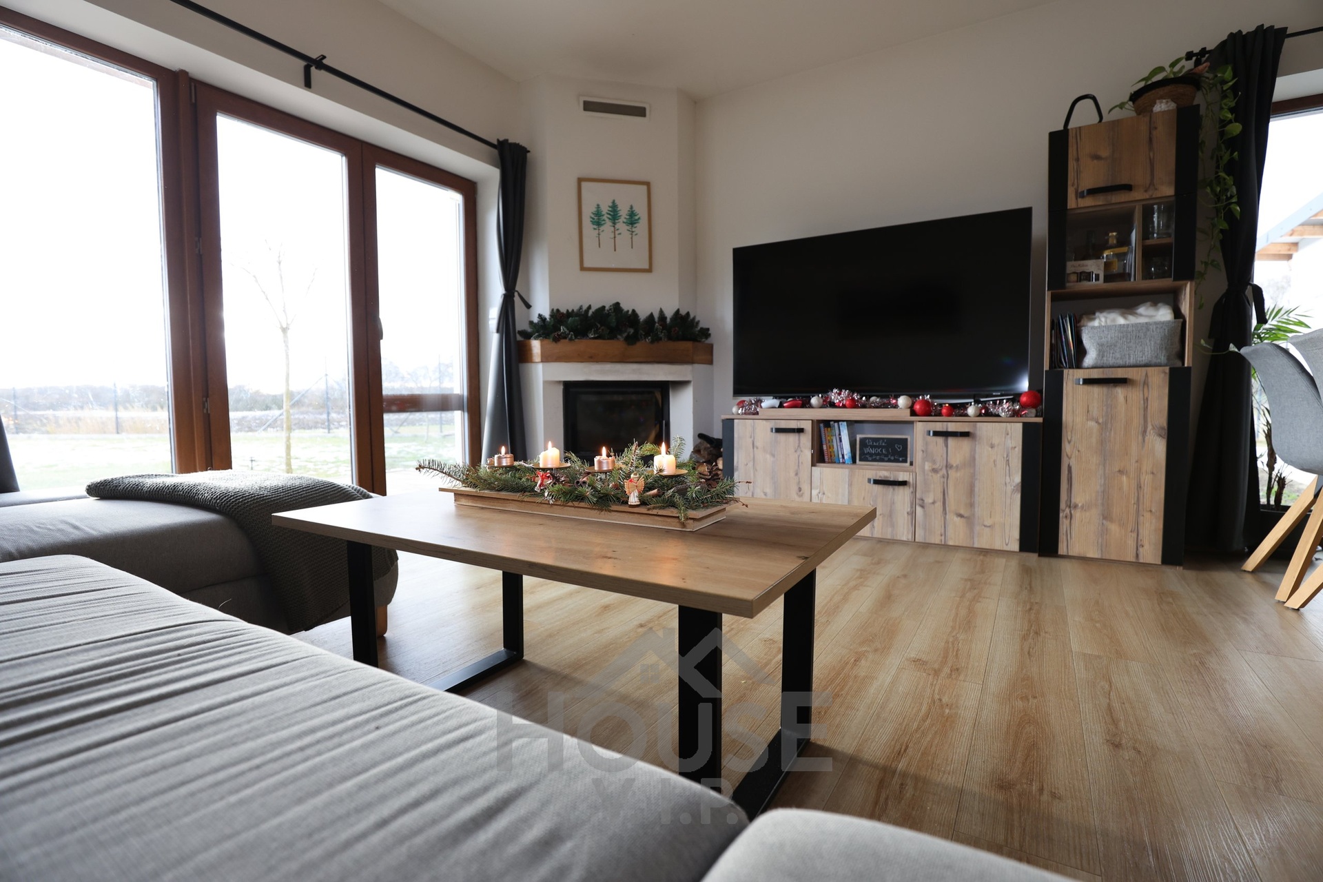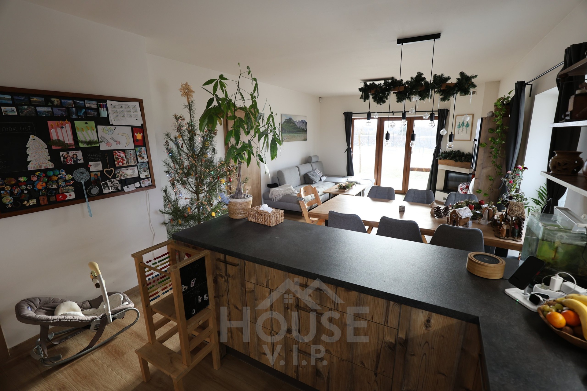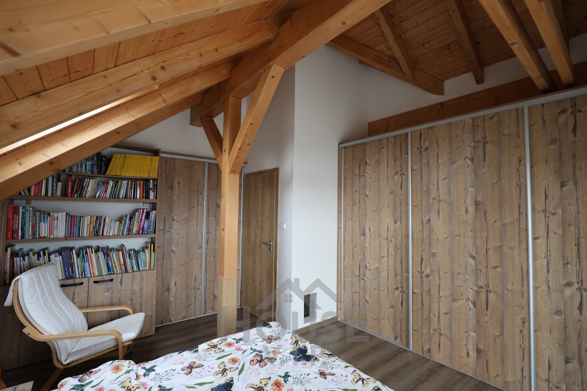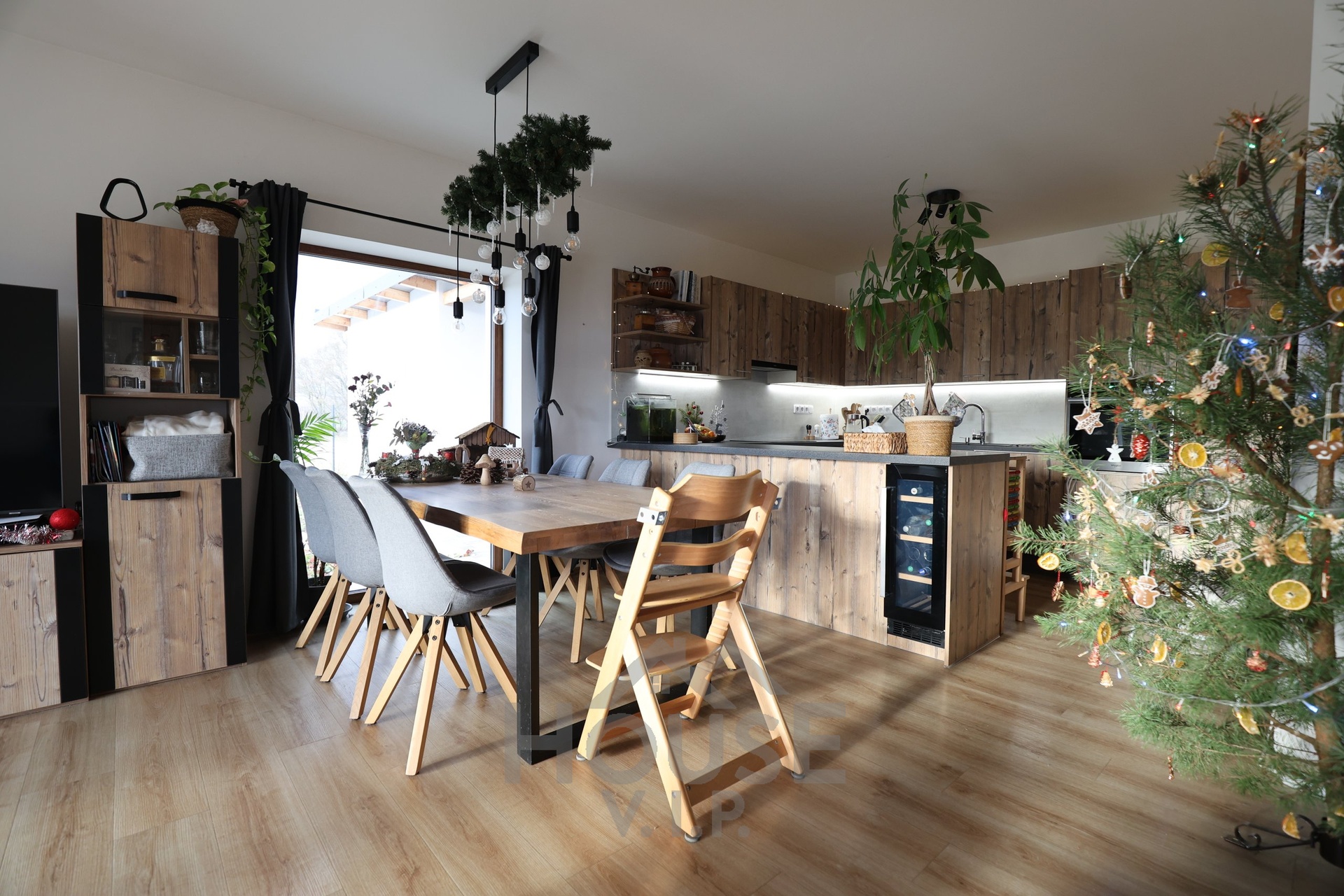 Interiér domu je laděn do teplých přírodních odstínů dřeva a působí velmi útulně. Většina nábytku byla vyrobena truhlářem na míru a je součástí prodejní ceny. Užitná plocha domu činí přibližně 132 m², dispozice je 6+kk. Dům je energeticky úsporný (PENB třídy B) s nízkými provozními náklady a je vybaven zabezpečovacím systémem Jablotron.
