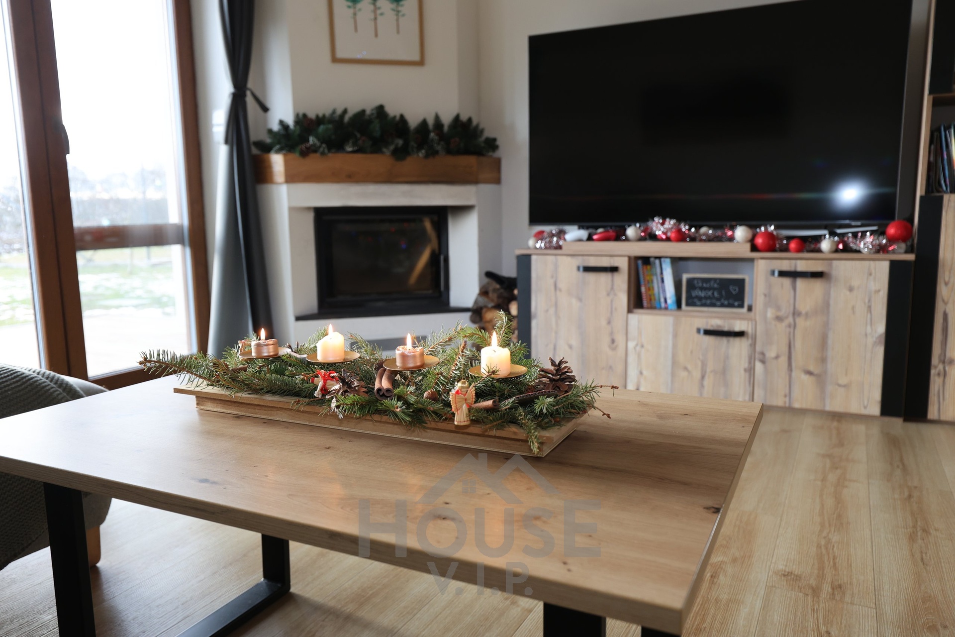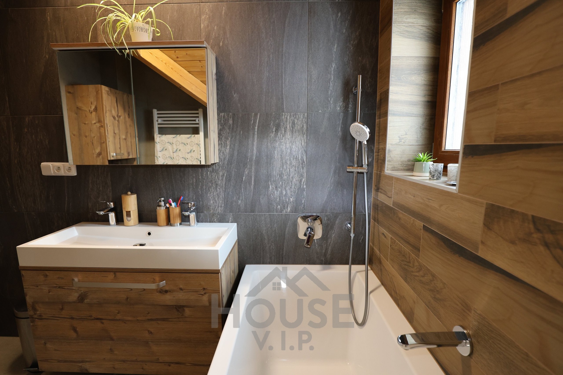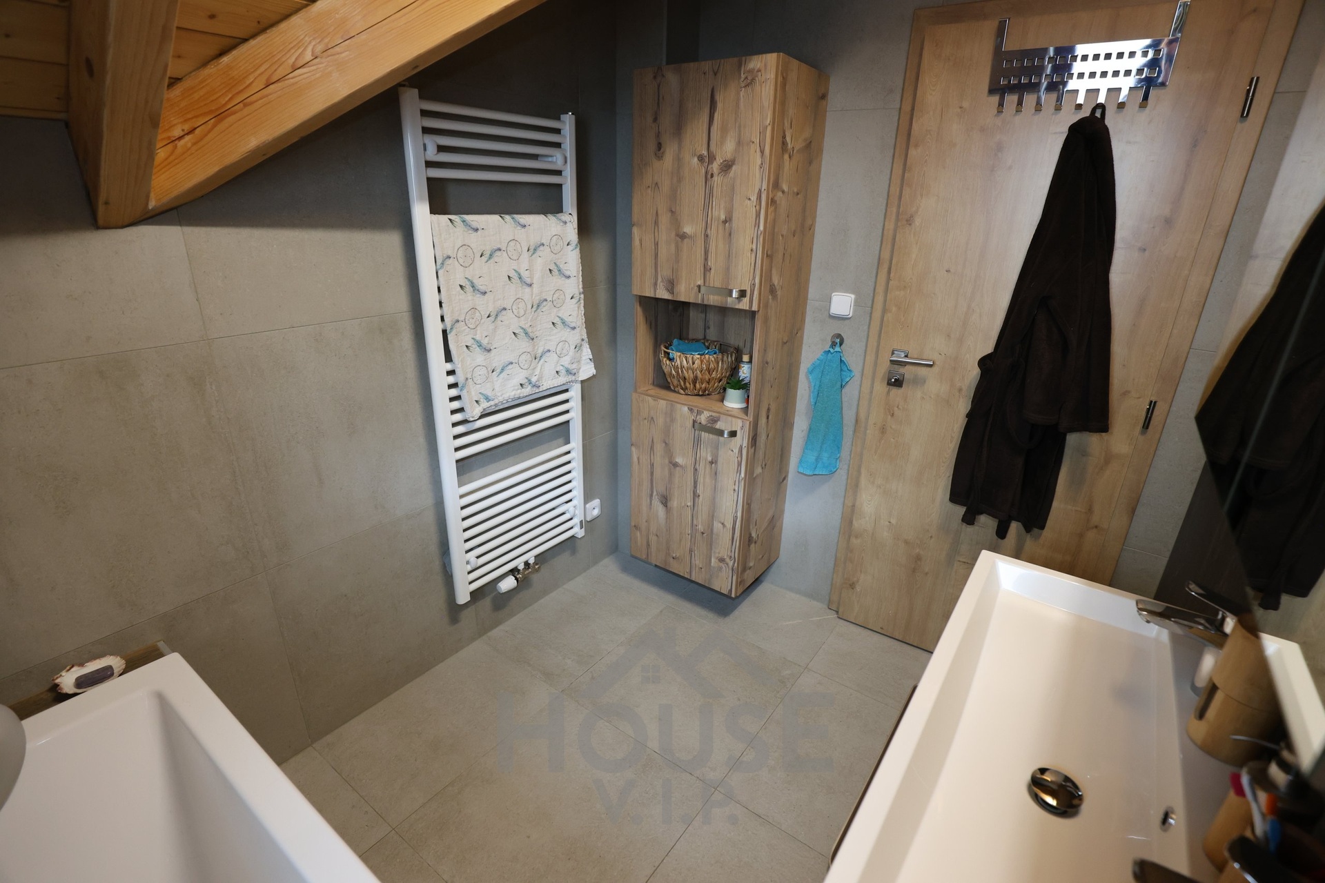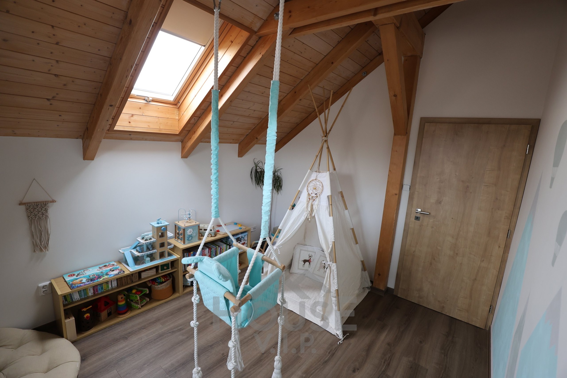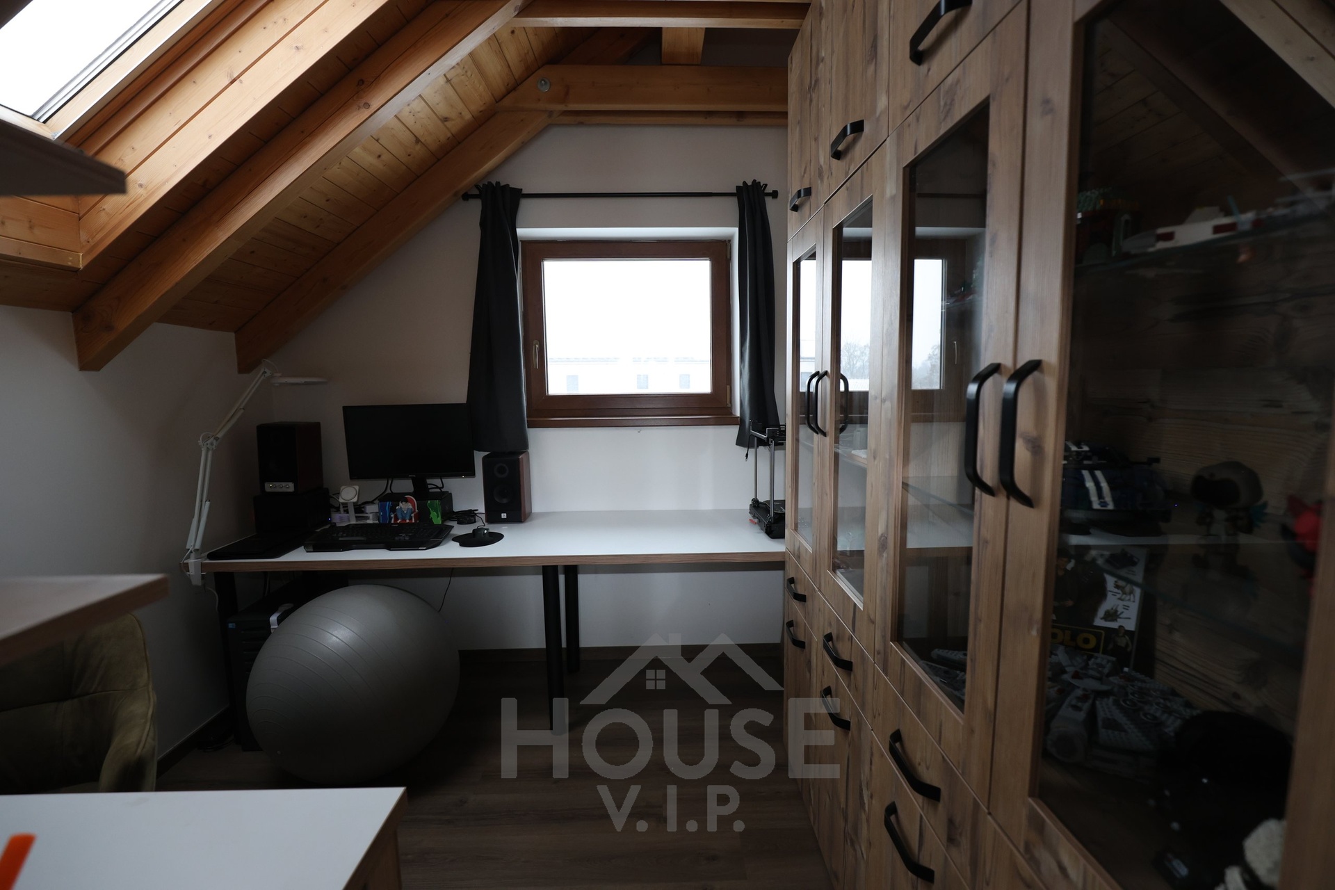 Interiér domu je laděn do teplých přírodních odstínů dřeva a působí velmi útulně. Většina nábytku byla vyrobena truhlářem na míru a je součástí prodejní ceny. Užitná plocha domu činí přibližně 132 m², dispozice je 6+kk. Dům je energeticky úsporný (PENB třídy B) s nízkými provozními náklady a je vybaven zabezpečovacím systémem Jablotron.