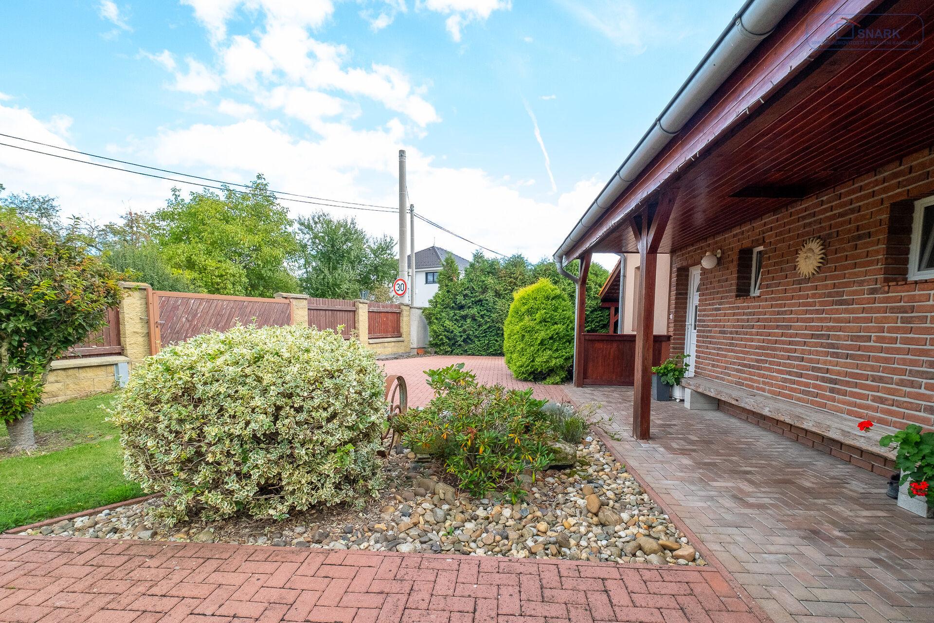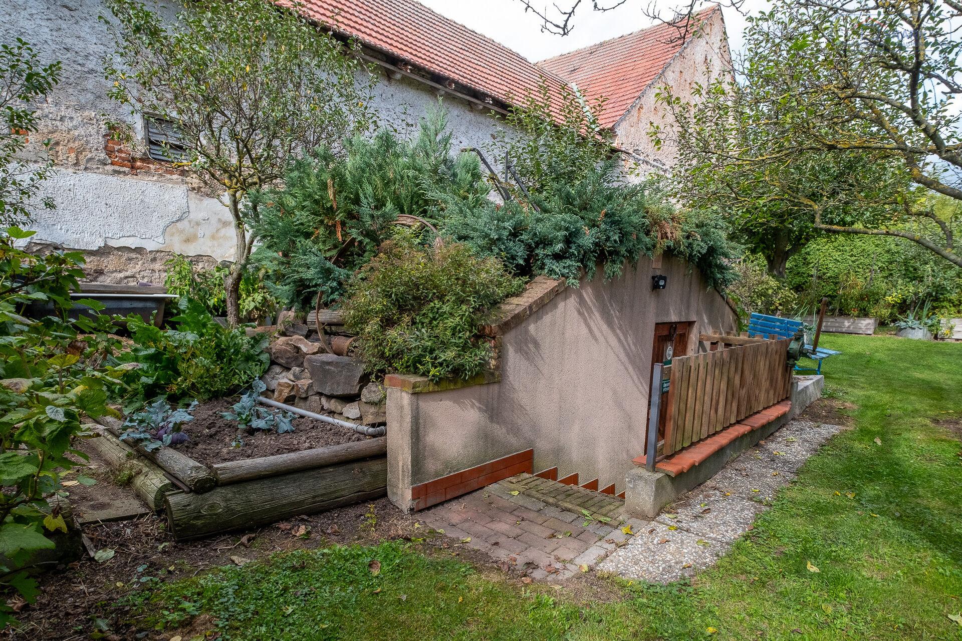Dům vás přivítá velkou, upravenou zahradou o výměře 1 786 m², kde najdete nejen krásnou zeleň a vzrostlé dřeviny, ale také altán pro příjemné posezení, zahradní domek a sklípek.