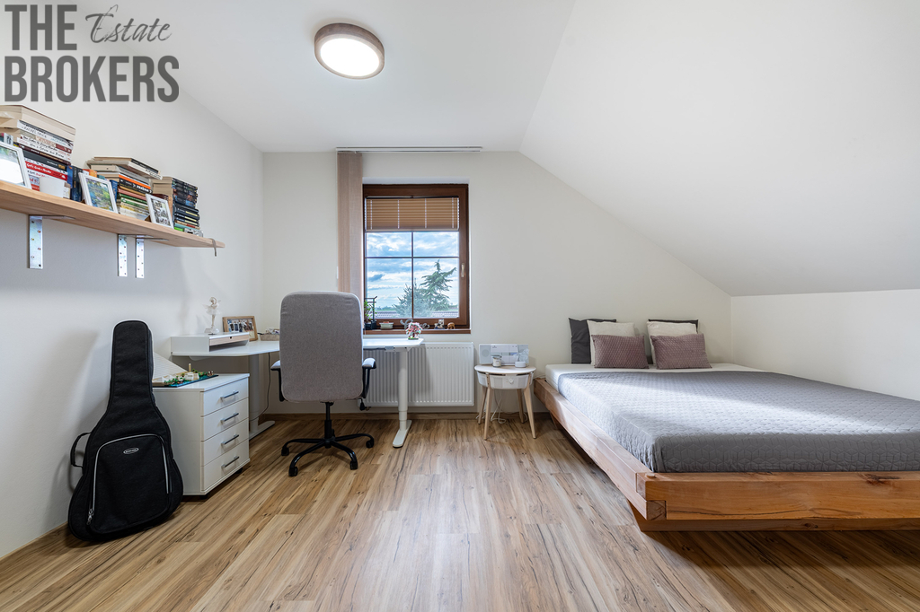 - Velkorysý prostor pro rodinu: Dispozice 6+kk zajišťuje pohodlné bydlení i početnější rodině, případně nabízí možnost oddělení na dvougenerační bydlení.