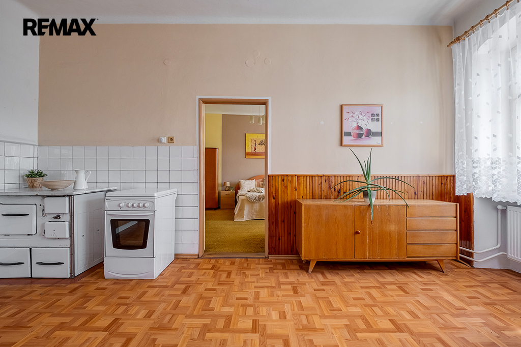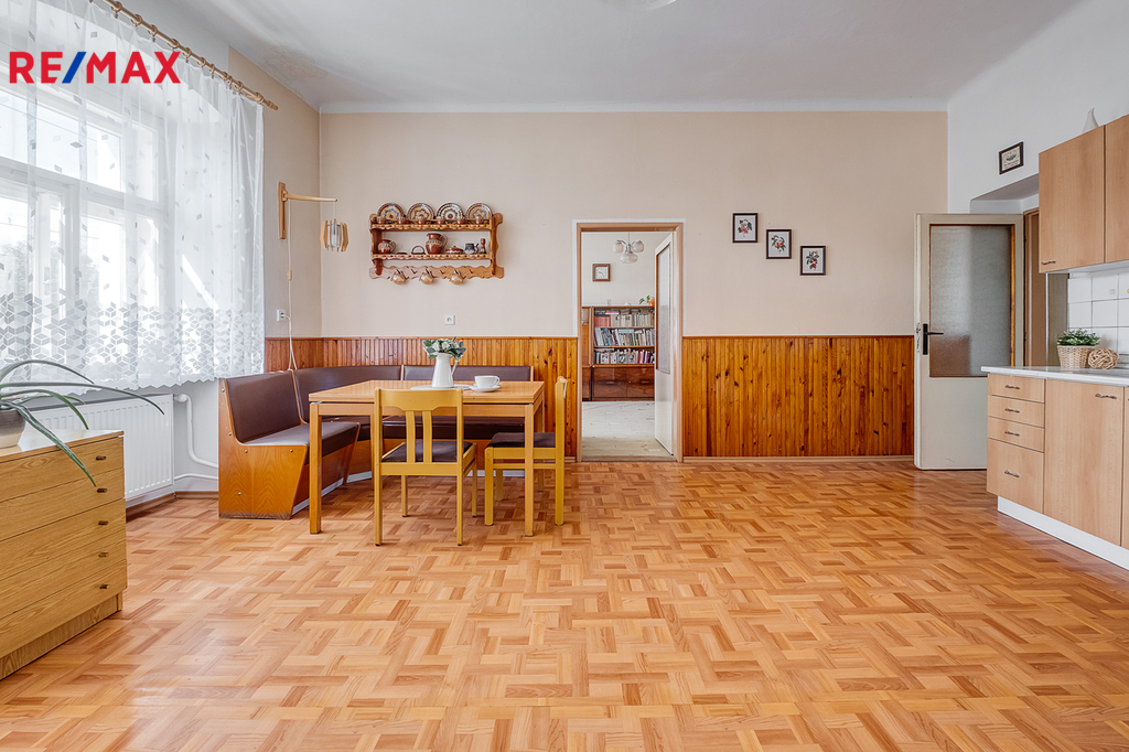 Dům stojí na pozemku o rozloze 1223 m2 a užitná plocha domu je cca 200 m2. Rodinný dům je patrový, v přízemí je koupelna s toaletou, dva samostatné pokoje, kuchyň, sklep a prostorná chodba. Z chodby vedou schody do prvního patra, kde je koupelna s toaletou, komora, kuchyně, obývací pokoj a dvě ložnice. Z chodby v prvním patře se dostanete do dalšího patra, kde je prostorná půda. Dům by skvěle mohl sloužit jako více generační bydlení, protože má každé patro svůj vchod ze schodiště. Na půdě by mohly vzniknout další pokoje. Dům je v udržovaném stavu, ale neproběhly zde žádná větší rekonstrukce. Na pozemku u domu jsou další dvě stavby, kde je dvojgaráž, dílna a stodola na dřevo.