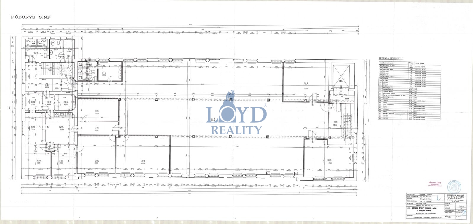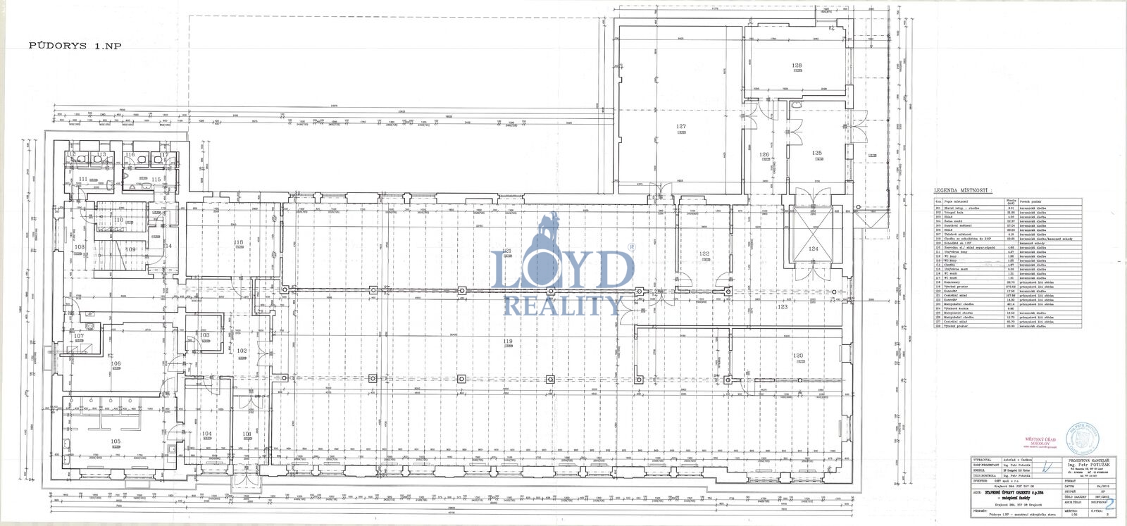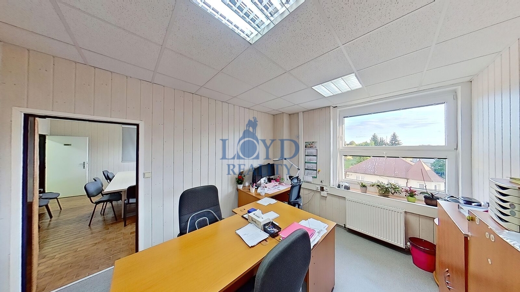 1. PP – pod částí objektu. 1. NP – vchod, výrobní hala, skladové haly, kompresorovna, chodba, šatny umývárna a WC. 2. a 3. NP – výrobní hala, skladové haly, kanceláře, chodba, šatny umývárna a WC. 4. NP – půda, sklady. Sedlová střecha, krytina asfaltový šindel, využitelné podkroví o dostatečné výšce.