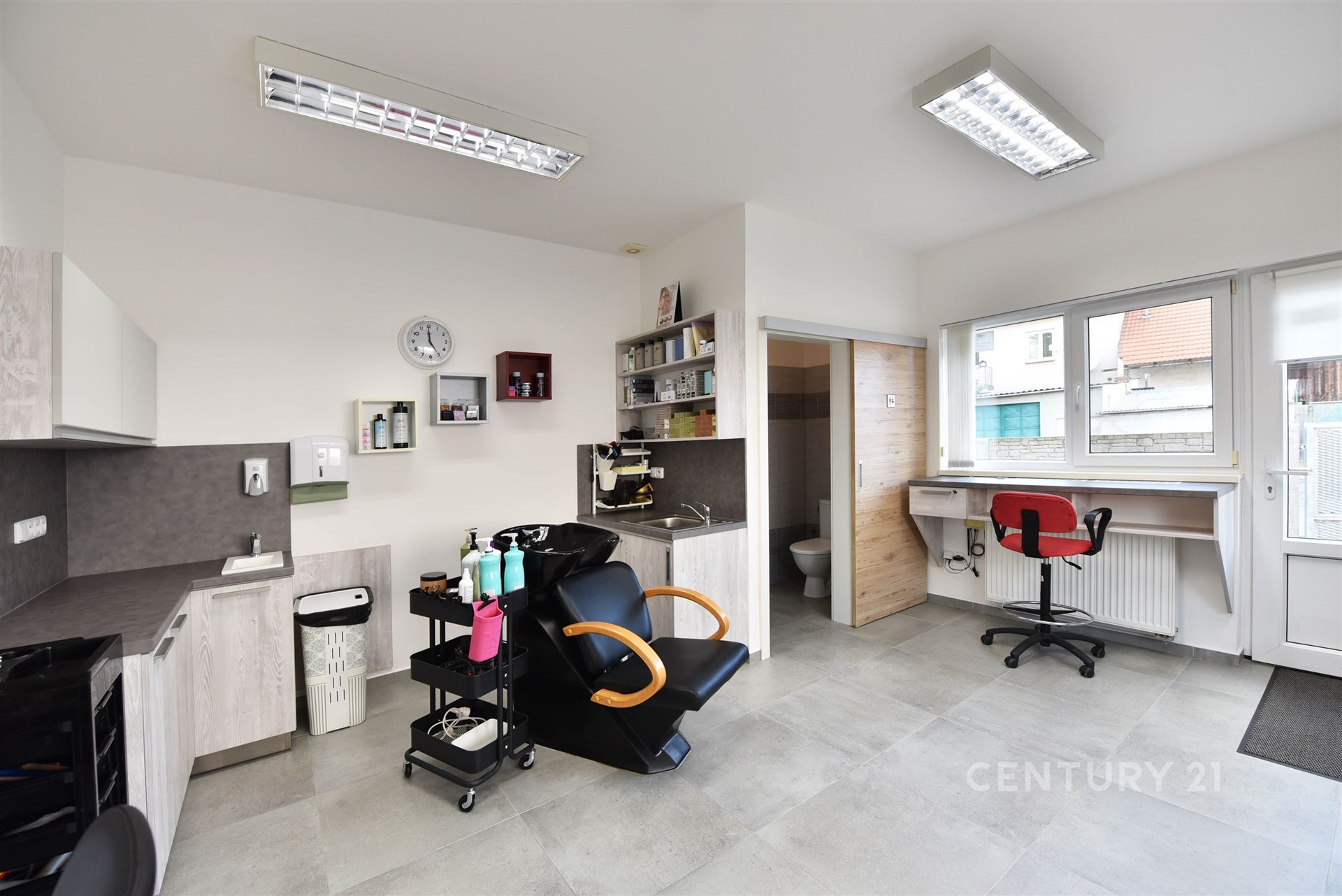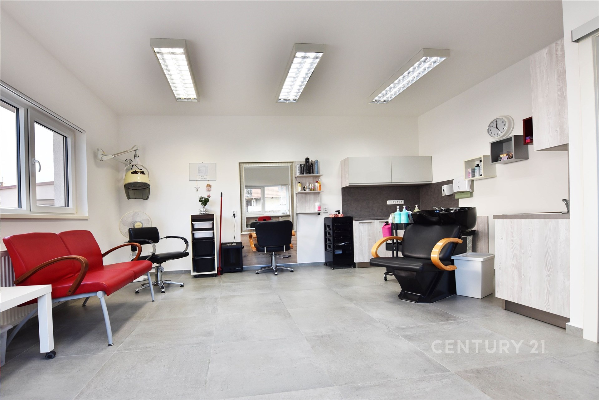 K rodinnému domu náleží, jak už bylo zmíněno, i nově přistavený komerční prostor o celkové výměře 57m2, který je v současné době využíván jako kadeřnický salón, v těsné blízkosti je také dílna, která by se dala využít např. šikovným automechanikem. K domu přiléhá také garáž o velikosti 25 m² a další venkovní parkovací stání, což zajišťuje dostatek místa pro vozidla rodiny.