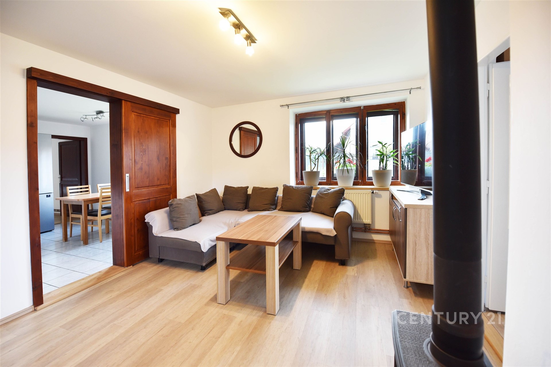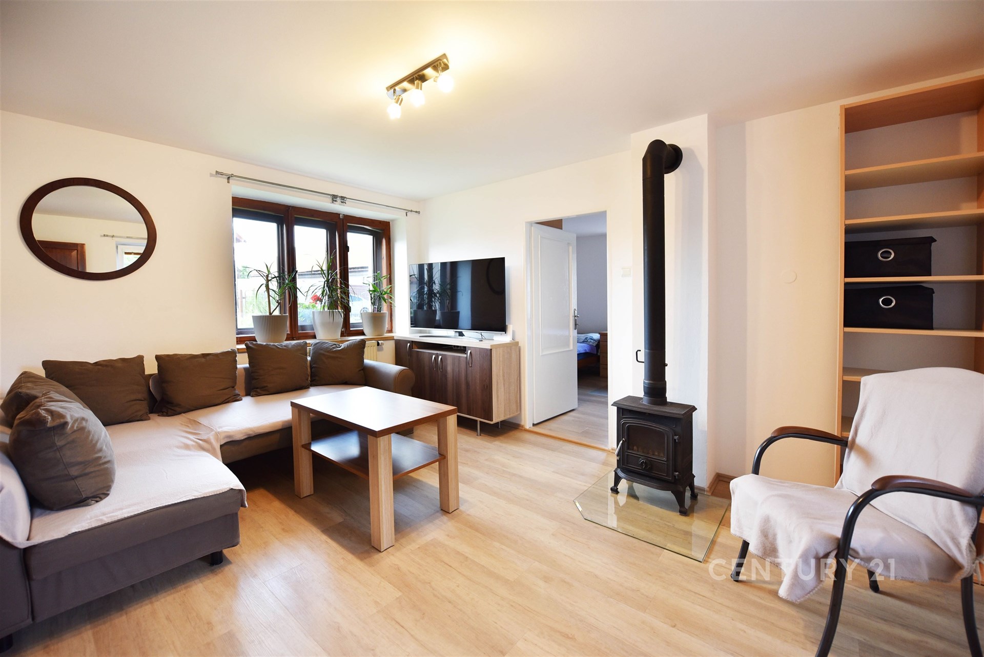 Dům je napojen na veřejný vodovod a kanalizaci, vytápění zajišťuje plynový kotel a v obývacím pokoji dodají útulnosti kamínka na dřevo, což je v zimních měsících velmi příjemné.
