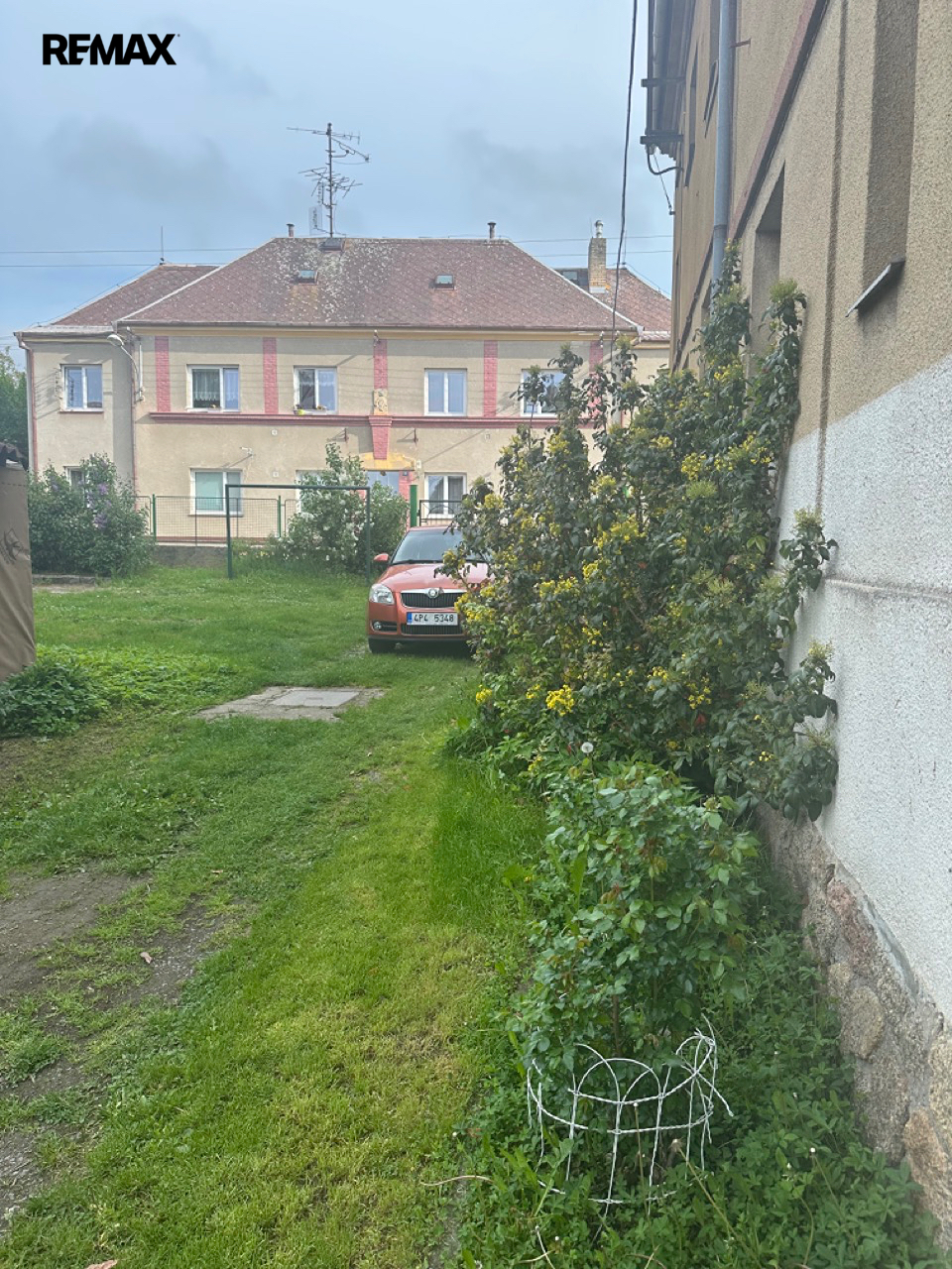 Bytový dům disponuje vnitroblokem, který skýtá příjemný prostor k posezení v zeleni a možnost parkování i uložení věcí ve venkovních kójích.