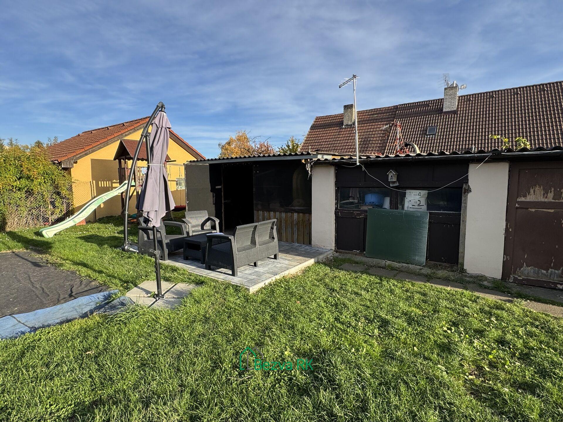 K domu náleží prostorný, rovinatý pozemek o výměře 762m², kde najdeme zimní/letní pergolu s krbem, garáž a další úložné prostory.