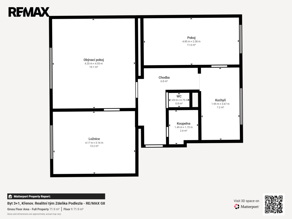 • Dispozice: 3+1 o výměře 63 m² v 1. NP (zvýšené přízemí).
