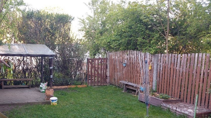 Prostor za domem může sloužit při hezkém počasí k příjemnému posezení.