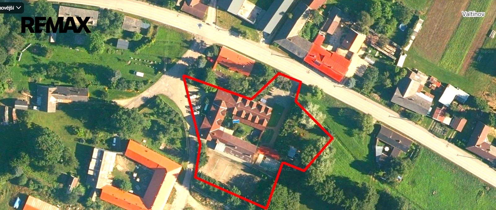 Dům o velikosti 300 m2 byl vybudován před 20 lety z asi 100 let starého zemědělského objektu. Zastavěná plocha činí cca 680 m2 a celková výměra parcely je 3811 m2. V současné době je nemovitost využívána jako penzion a nabízí k dispozici 8 pokojů a 2 apartmány. Každý pokoj disponuje vlastní koupelnou a WC. Každé křídlo (3 pokoje) má k dispozici společnou kuchyňku. Každý z apartmánů disponuje vlastní kompletně vybavenou prostornou kuchyní. Dále se zde nachází společenská místnost s vlastní kuchyňskou linkou. V přízemí penzionu se nachází restaurace s kapacitou 40 míst a prostornou kuchyní. Dále možno využít posezení na venkovní terase o velikosti cca 30 míst. Přímo u domu se nachází zastřešený bazén, víceúčelové sportovní hřiště, dětské hřiště s houpačkami a skluzavkou a venkovní posezení s grilem. Parkování možno na vlastním parkovišti před domem nebo přímo v areálu.