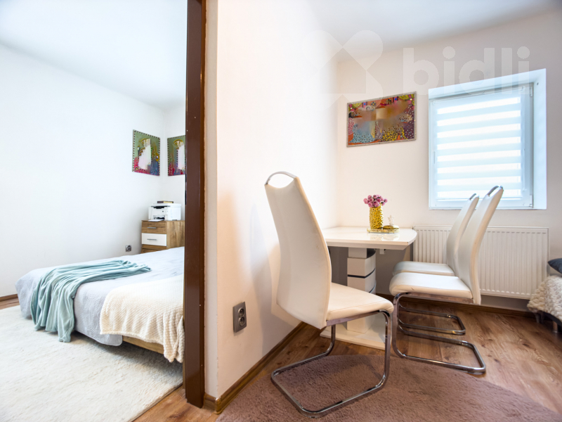 Podlahová plocha domu činí 68m2 a je momentálně dispozičně řešen jako 2kk s vlastní saunou, se zimní terasou, letní terasou a zahradou 1045m2, s možností dvoupokojové přístavby o velikosti dalších 52m2 v přední části domu a to již s hotovou základovou deskou.