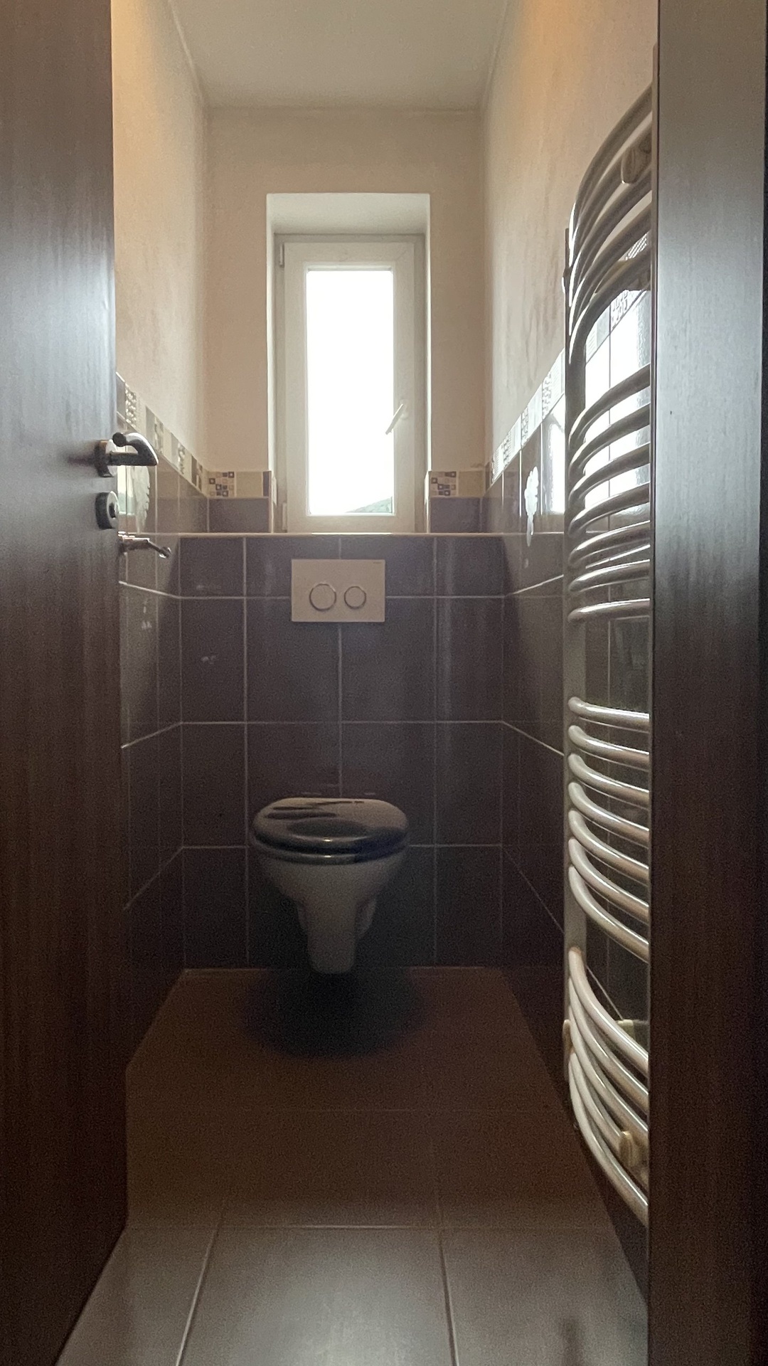 Toaleta je umístěna odděleně, což zlepšuje funkčnost a soukromí prostoru.