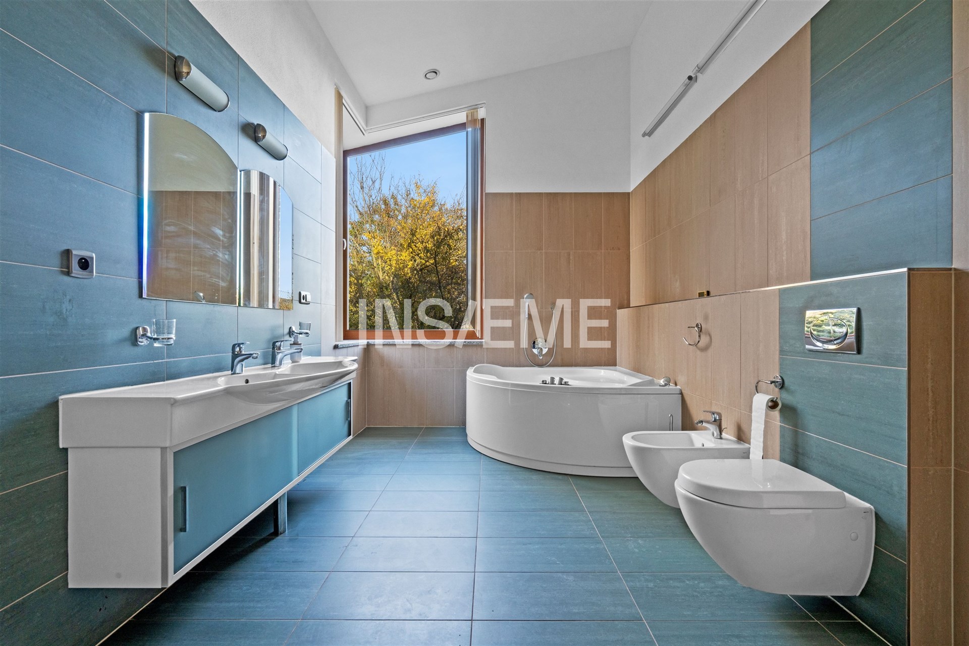 V přízemí se dále nachází luxusní master bedroom s vlastní koupelnou, samostatné WC a vstup do dvojgaráže přímo z interiéru.