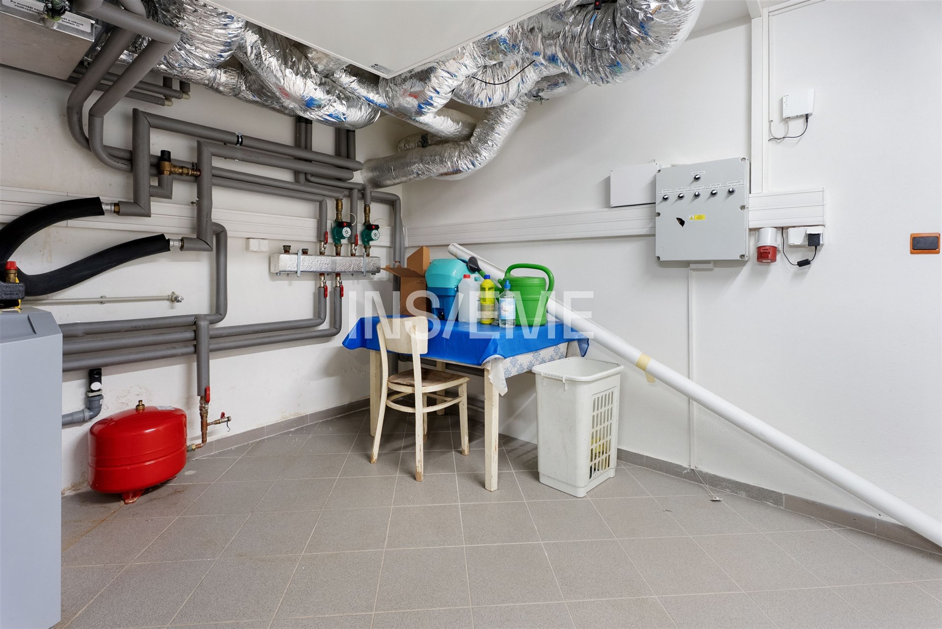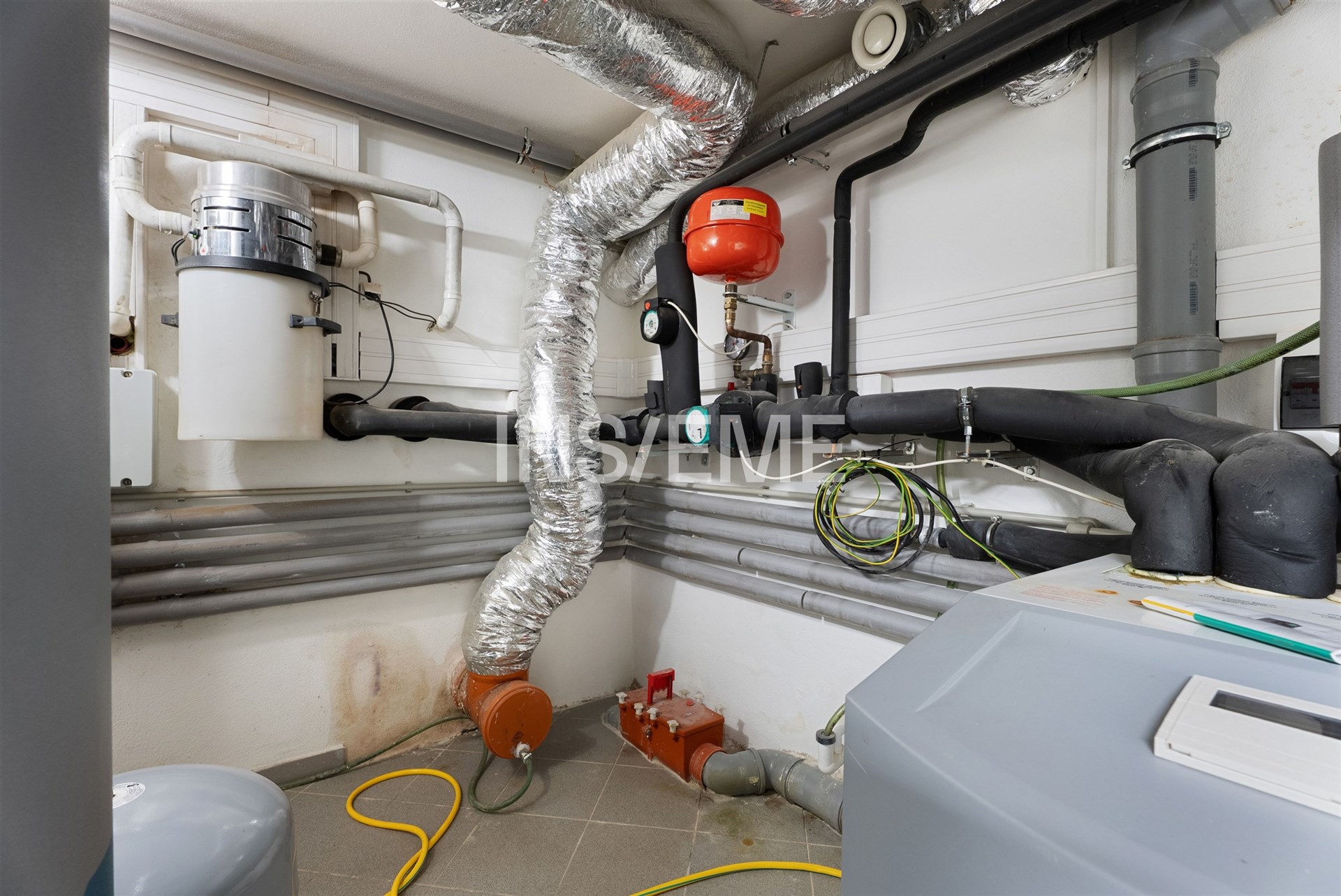 Technické zázemí domu je výjimečné svou komplexností i precizností. Dům je napojen na hlubinný zemní vrt o hloubce 156 m s tepelným čerpadlem o výkonu 12 kW. Součástí je fotovoltaická elektrárna o výkonu 12 kWp s watrouterem pro optimalizaci využití energie a akumulační nádrží o objemu 1000 l. Systém přepínání fází a inteligentní správy elektřiny zajišťuje maximální energetickou efektivitu. Rekuperace značky ATREA umožňuje manuální regulaci výměny vzduchu a venkovní registr předehřívá vzduch v zimě a ochlazuje v létě.