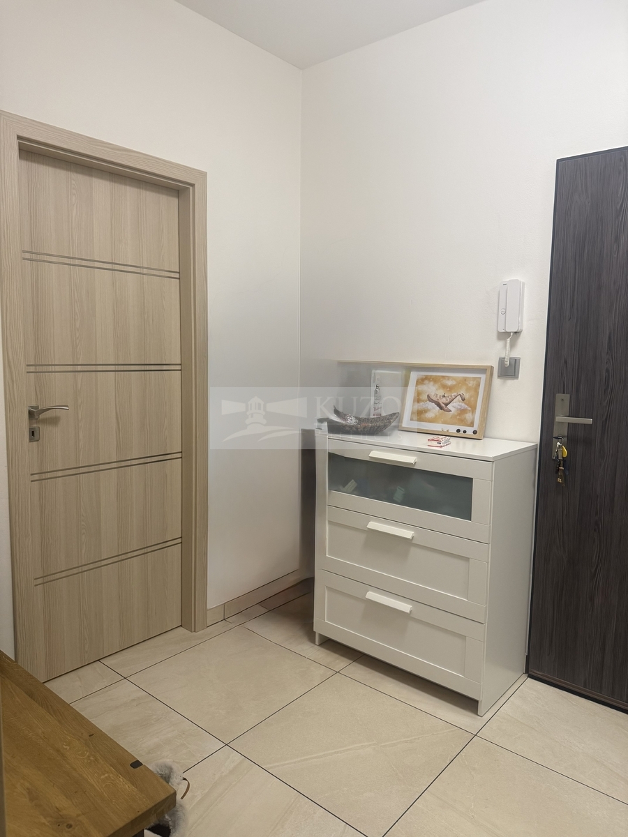 Jednou z předností bytu je přístupná předzahrádka z každé obytné místnosti. Dokončovací práce byly provedeny v nadstandardu (vinylová podlaha, dlažba Piemme - limestone v dekoru kamene, dveře Sapeli). Obývací pokoj je velkoryse navržen, aby bylo možné prostor rozdělit na část kuchyňskou, jídelní a odpočinkovou. Kuchyně byla navržena do tvaru L a je vybavena vestavěnými spotřebiči AEG. V bytě naleznete dostatek úložných ploch, které nijak nezasahují do obytných místností. První úložný prostor je ve vstupní chodbě v podobě vestavěné skříně. Další již samostatná šatna s vestavěným úložným systémem je přístupná taktéž z chodby a poslední šatní prostor patří k ložnici. Dalším bonusem je rozvedený internet do každé místnosti, optický kabel zavedený do bytu a pro venkovní prostor jsou umístěny rozvody na kamerový systém.