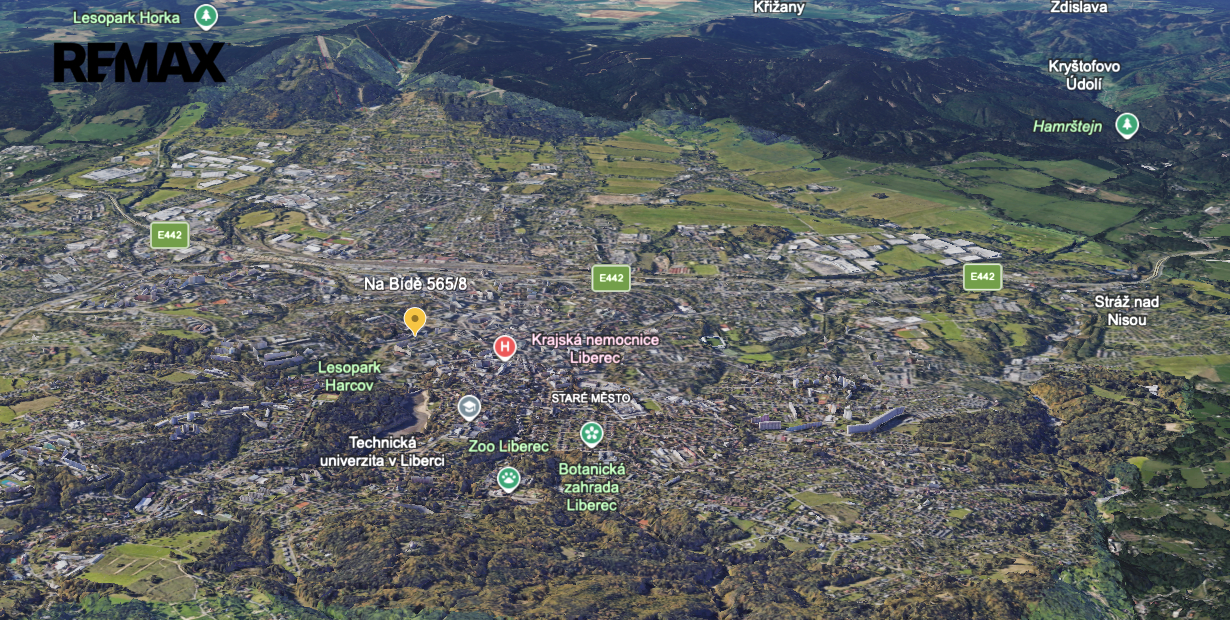 Tento byt se nachází přímo v centu města Liberce, takže je to ideální volba pro milovníky městského života. V blízkosti je i vodní přehrada Harcov. Díky MHD je velmi dobrá dostupnost jak Jizerek, tak Ještědského hřebenu. Tramvajový spoj přímo před domem jede až do sousedního Jablonce nad Nisou.