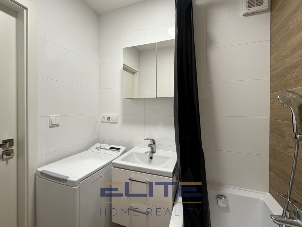 Byt se nabízí bez nábytku – na fotografiích je sice částečně vybaven, toto vybavení však nebude součástí pronájmu. V bytě jsou vinylové podlahy. Kuchyňská linka je vybavena sklokeramickou varnou deskou, elektrickou troubou, digestoří a mikrovlnnou troubou, Koupelna je vybavena vanou se skleněnou zástěnou, umyvadlem a zrdcadlem nad umyvadlem, ostatní vybavení si nový nájemník zajišťuje sám.