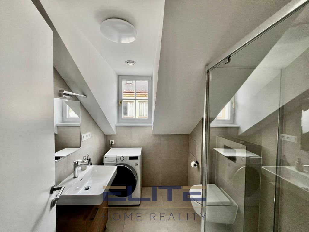 - světlá koupelna s WC a se sprchovým koutem vč. pračky se sušičkou