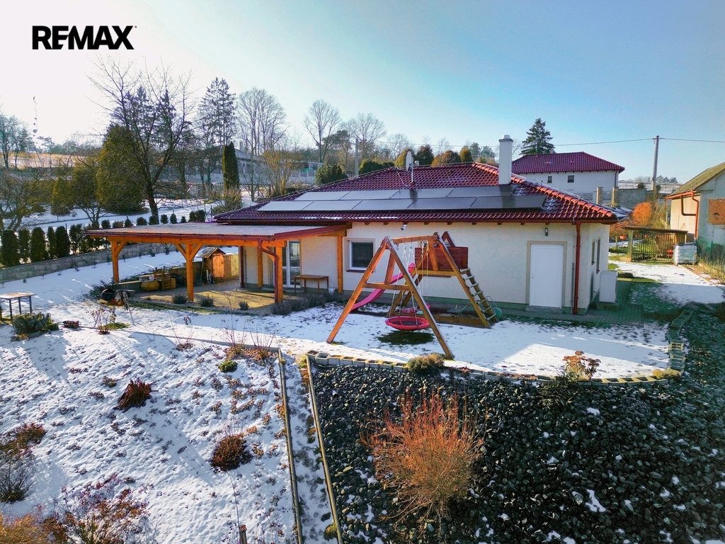 Na pozemku se nachází zateplený zděný dům o dispozici 5+kk, ve velmi dobrém technickém stavu, připravený k okamžitému užívání. Dům je vytápěn tepelným čerpadlem s teplovodním podlahovým topením, ohřev vody zajišťuje bojler 200 l. Energetickou soběstačnost podporuje fotovoltaická elektrárna 10 kWh se záložním zdrojem a baterií 10 kWh, díky čemuž jsou provozní náklady velmi nízké (cca 3 000 Kč měsíčně). Energetická třída B.