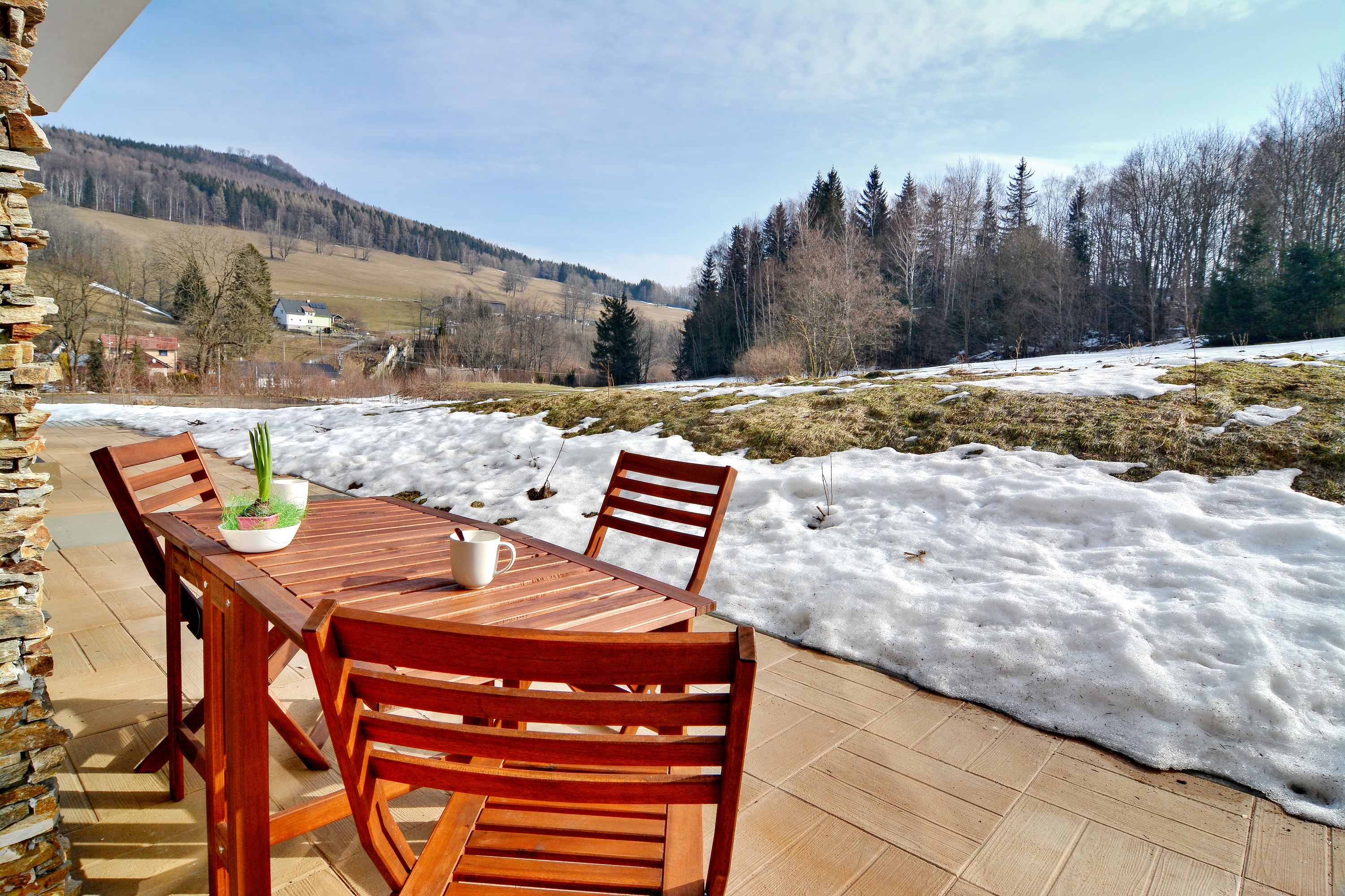 Apartmánový dům disponuje 15 apartmány, které byly dokončeny v roce 2018. Apartmány mají ideální polohu pro letní i zimní aktivity v přírodě. Nacházejí se v klidném horském prostředí na pomezí Jeseníků a Kralického Sněžníku, 6-9 km od lyžařských středisek Ramzová, Ostružná a Petříkov, 9 km od Jeseníku, 24 km od Červenohorského sedla. V apartmánu je obývací pokoj s kuchyňským koutem, ložnice, koupelna se sprchovým koutem a WC. Kuchyňská linka je vybavena indukční varnou deskou, digestoří, mikrovlnnou troubou s grilem, myčkou nádobí a velkou lednicí s mrazákem. V obývacím pokoji je komfortní designová rozkládací pohovka s plochou lůžka 160 x 200 cm. Ložnice s velkou manželskou postelí z masivu s luxusní pohodlnou matrací. Veškerý nábytek v pokojích je z masivního buku. Z ložnice je výstup na terasu plynule navazující na louku - vhodné pro rodiny s malými dětmi. Podlahové vytápění a ohřev TUV zajišťuje vlastní plynový kotel. Apartmán má vlastní měřidla elektřiny, plynu a vody. Vstup do objektu i apartmánu je možný elektronickým klíčem nebo aplikací ve smartphonu. Schodiště a parkoviště jsou monitorovány kamerovým systémem. Apartmán má vlastní elektronický zabezpečovací systém napojený na pult centrální ochrany. V objektu je společná lyžárna / kolárna. O objekt se stará správce. Zajištěn úklid společných prostor. Na fotografiích jsou typové apartmány v objektu. Nábytek a veškeré vybavení na snímcích odpovídá skutečnosti, orientace místnosti a uspořádání nábytku na fotografiích se nemusí shodovat s pozicí místnosti v půdorysu.