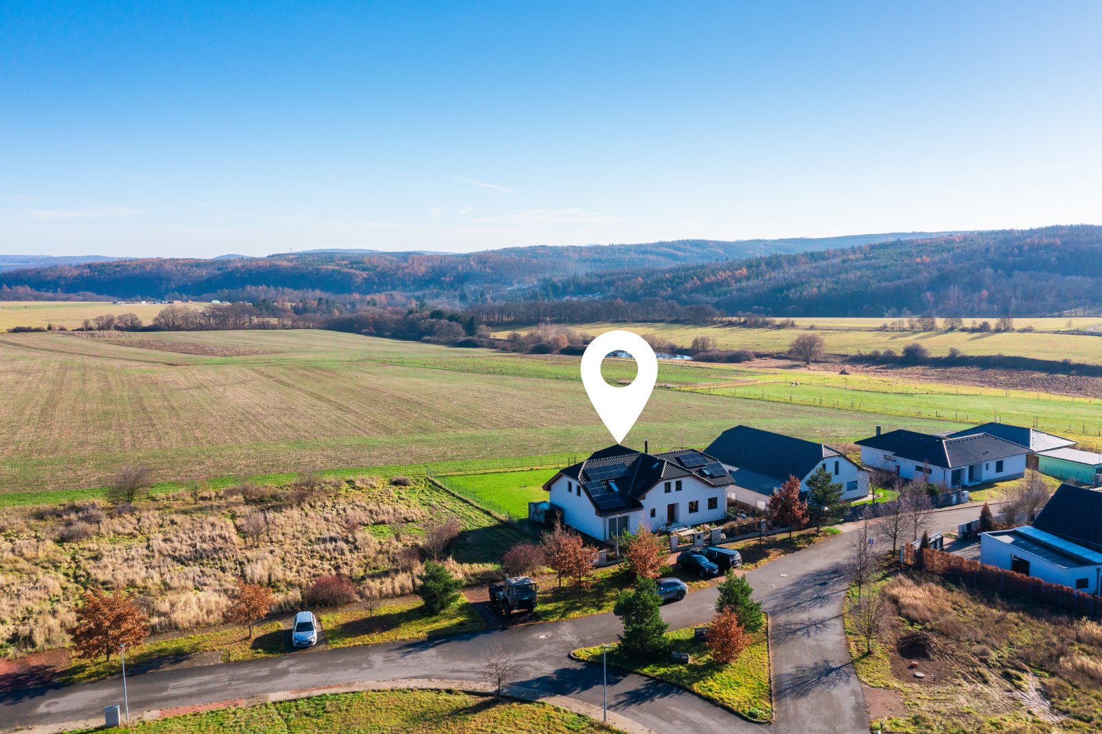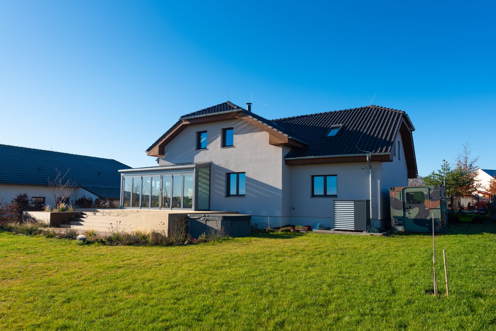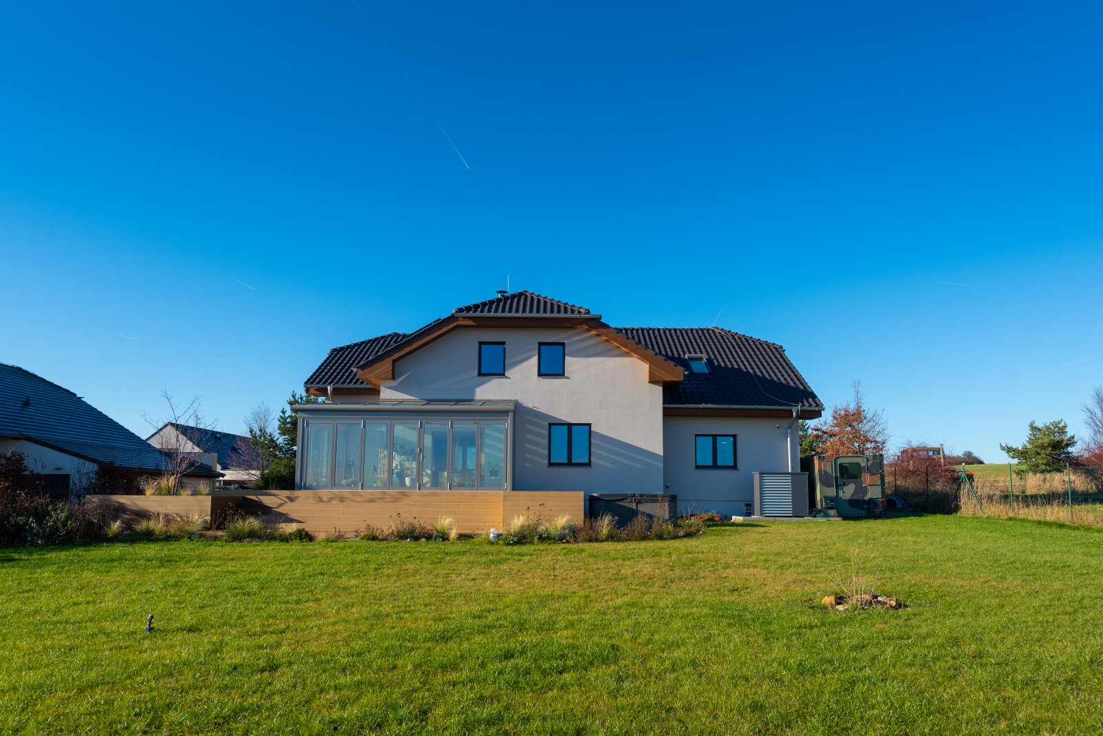 K dispozici jsou veškeré technické sítě, tepelné čerpadlo, podlahové vytápění v celém domě. Na zahradě je k dispozici vířívka, užitkovou vodu zajišťuje retenční nádrž. Dům nevznikl náhodou, ale jako promyšlený domov pro každodenní život, odpočinek i setkávání. Místo, kde rána začínají pohledem do zeleně, dny plynou v absolutním soukromí a večery končí v teple domova, který dává smysl.