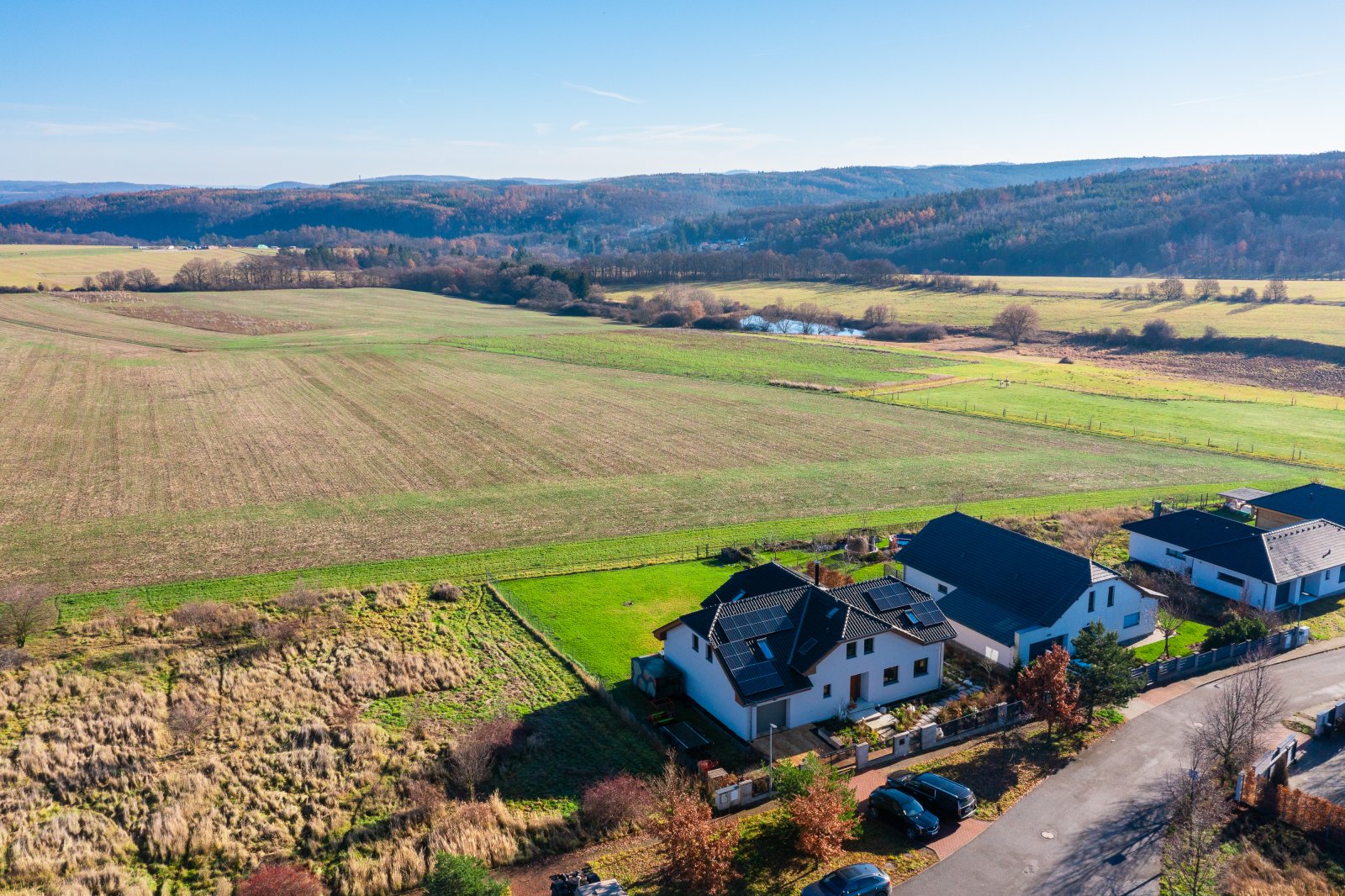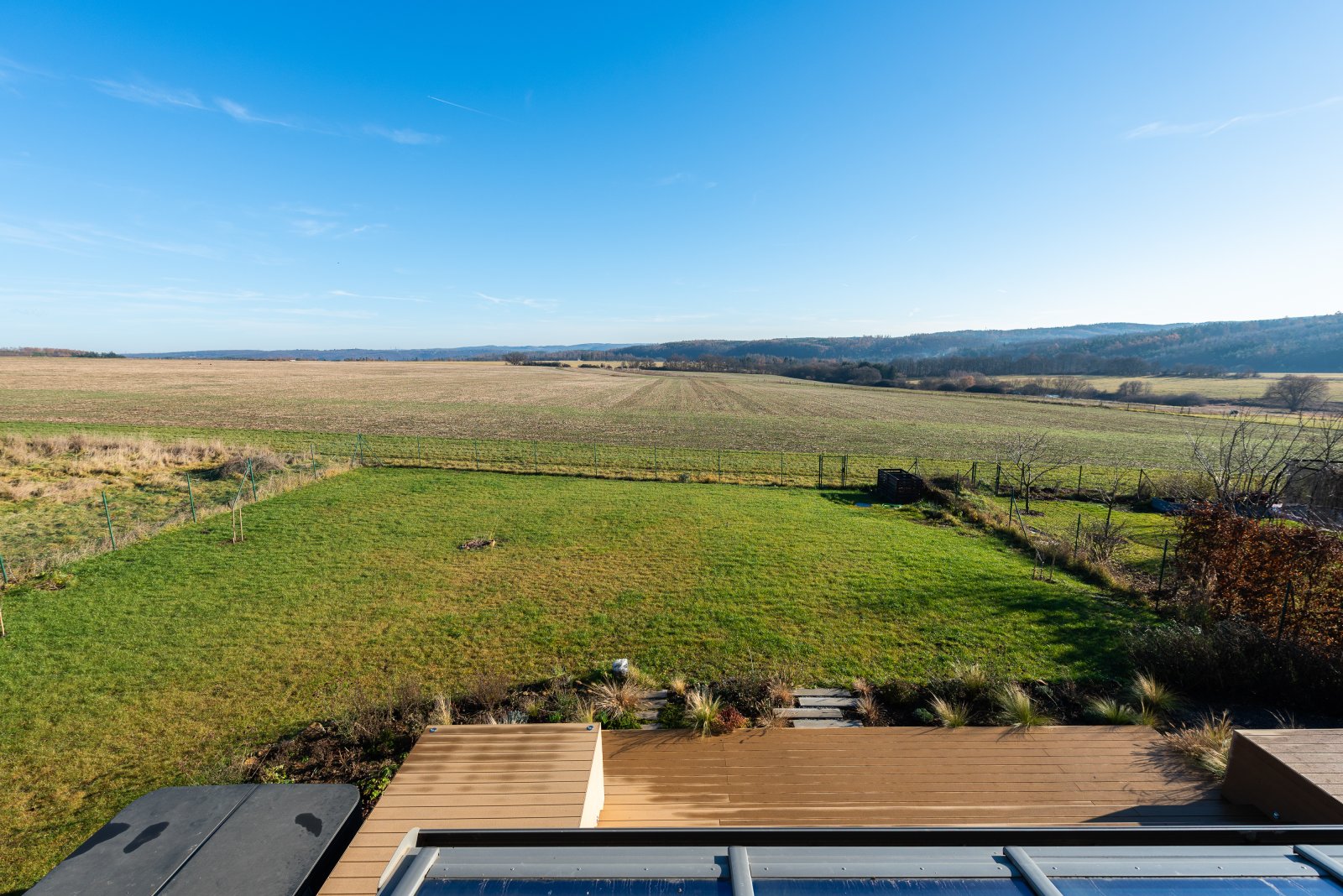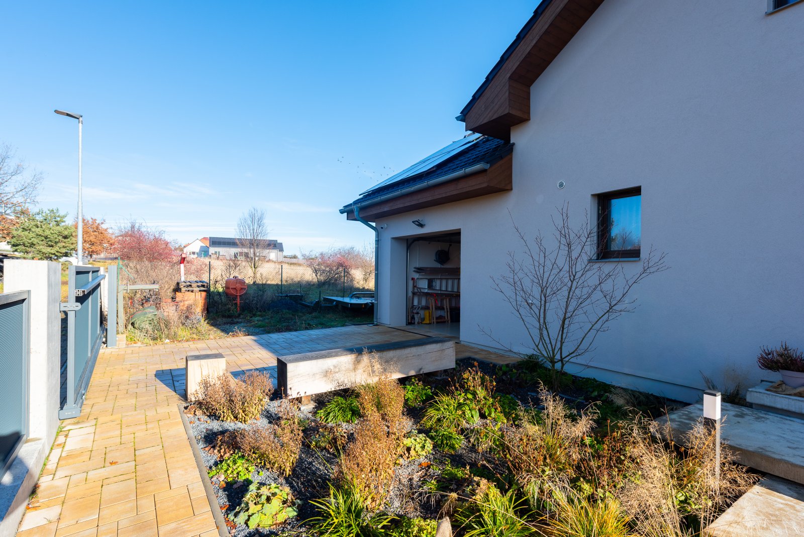 K dispozici jsou veškeré technické sítě, tepelné čerpadlo, podlahové vytápění v celém domě. Na zahradě je k dispozici vířívka, užitkovou vodu zajišťuje retenční nádrž. Dům nevznikl náhodou, ale jako promyšlený domov pro každodenní život, odpočinek i setkávání. Místo, kde rána začínají pohledem do zeleně, dny plynou v absolutním soukromí a večery končí v teple domova, který dává smysl.