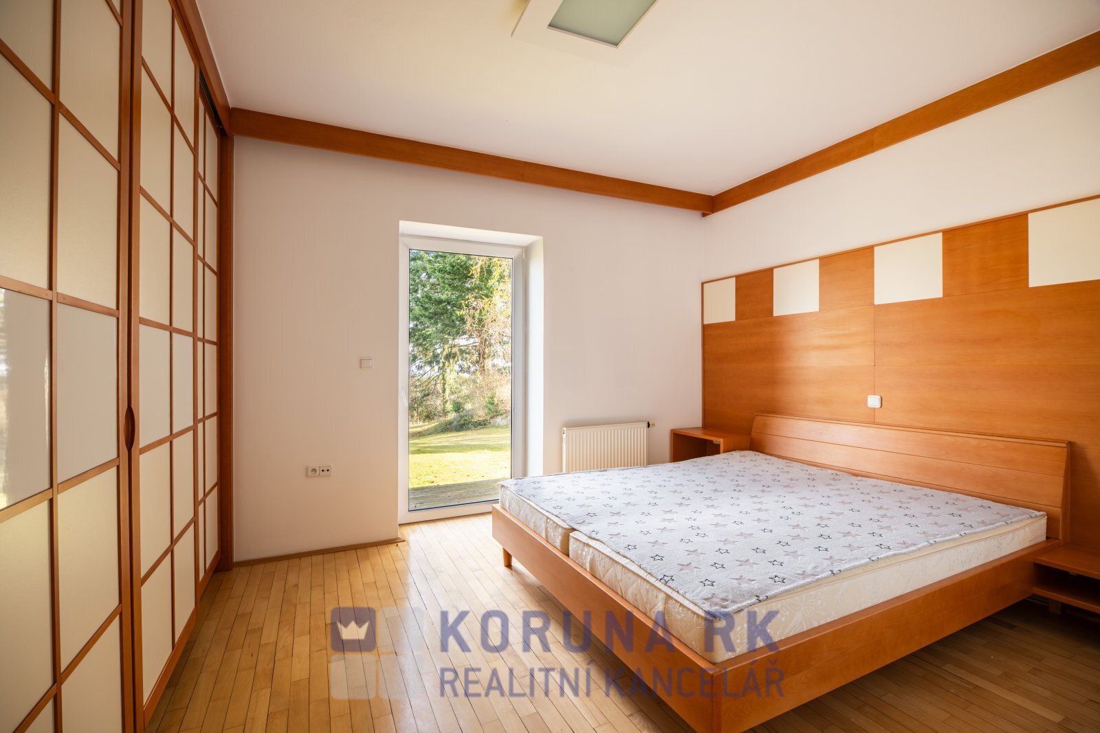 V přízemí je prostorná garáž pro 2 OA na kterou navazují technické a skladové prostory, šatna a vstup se schodištěm do ateliéru (garsoniery). Hlavní obytné prostory jsou ve východní části stavby, kdy v přízemí je prostorný obytný pokoj s jídelnou, kuchyní a kachlovými kamny umístěnými přibližně uprostřed tohoto prostoru, dále je v přízemí ložnice, koupelna s WC a hala se schodištěm do podkroví. Z obytného prostoru je možný výstup na terasu. V podkroví jsou z haly přístupné 2 velké pokoje, koupelna s WC, která je průchozí do šatny a též ateliér. U domu se nachází přístřešek na další auto, nebo karavan a dále dřevěná kolna na nářadí a dřevo. Zahrada je s okrasnými keři, v jihovýchodní části zahrady je skleník.